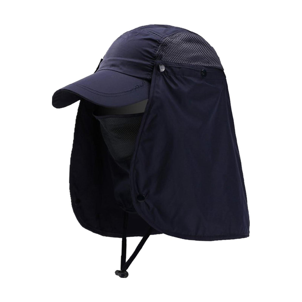 Maxbell 4xOutdoor Hiking Hat with Removable Face Neck Flap Cover Breathable for Garden Dark Blue