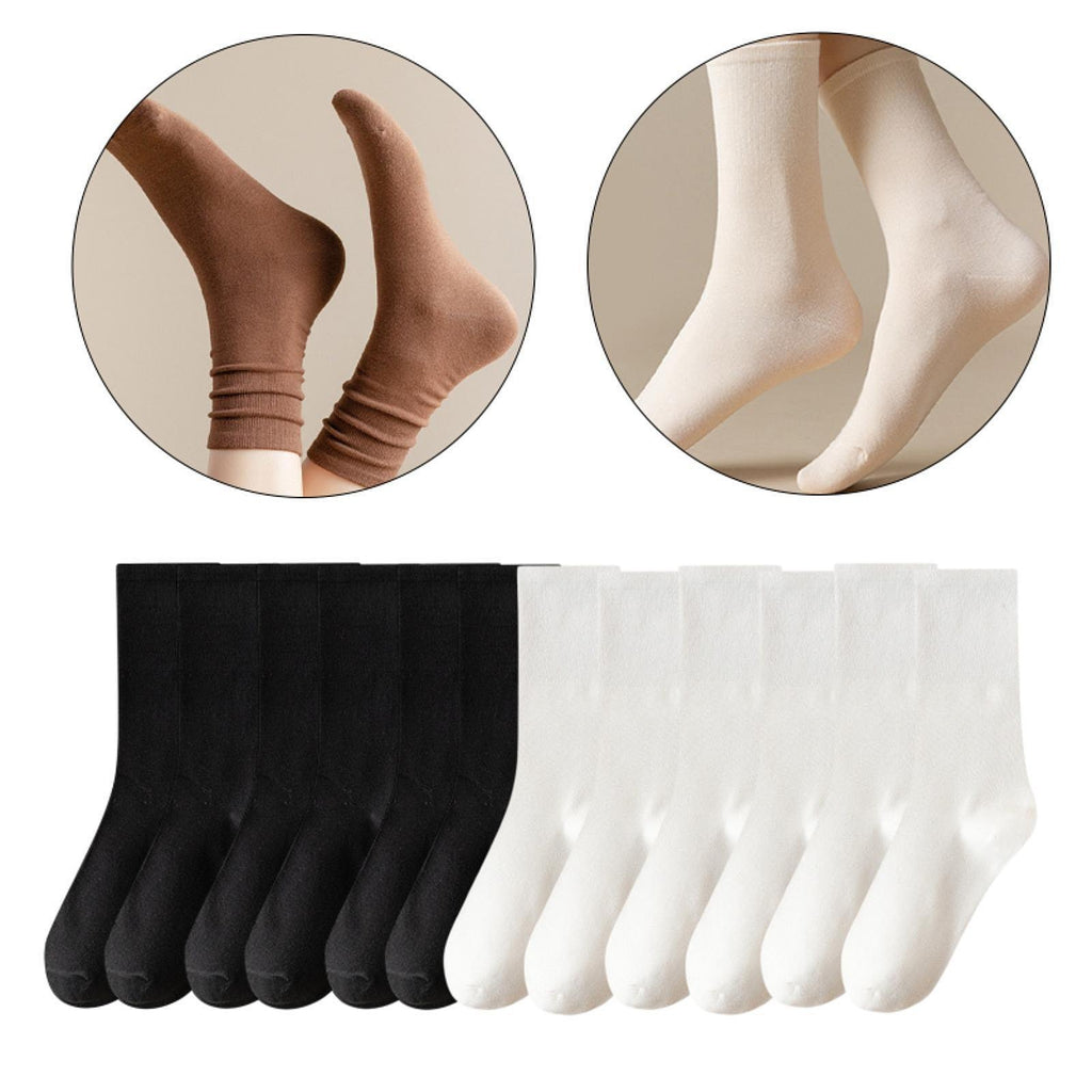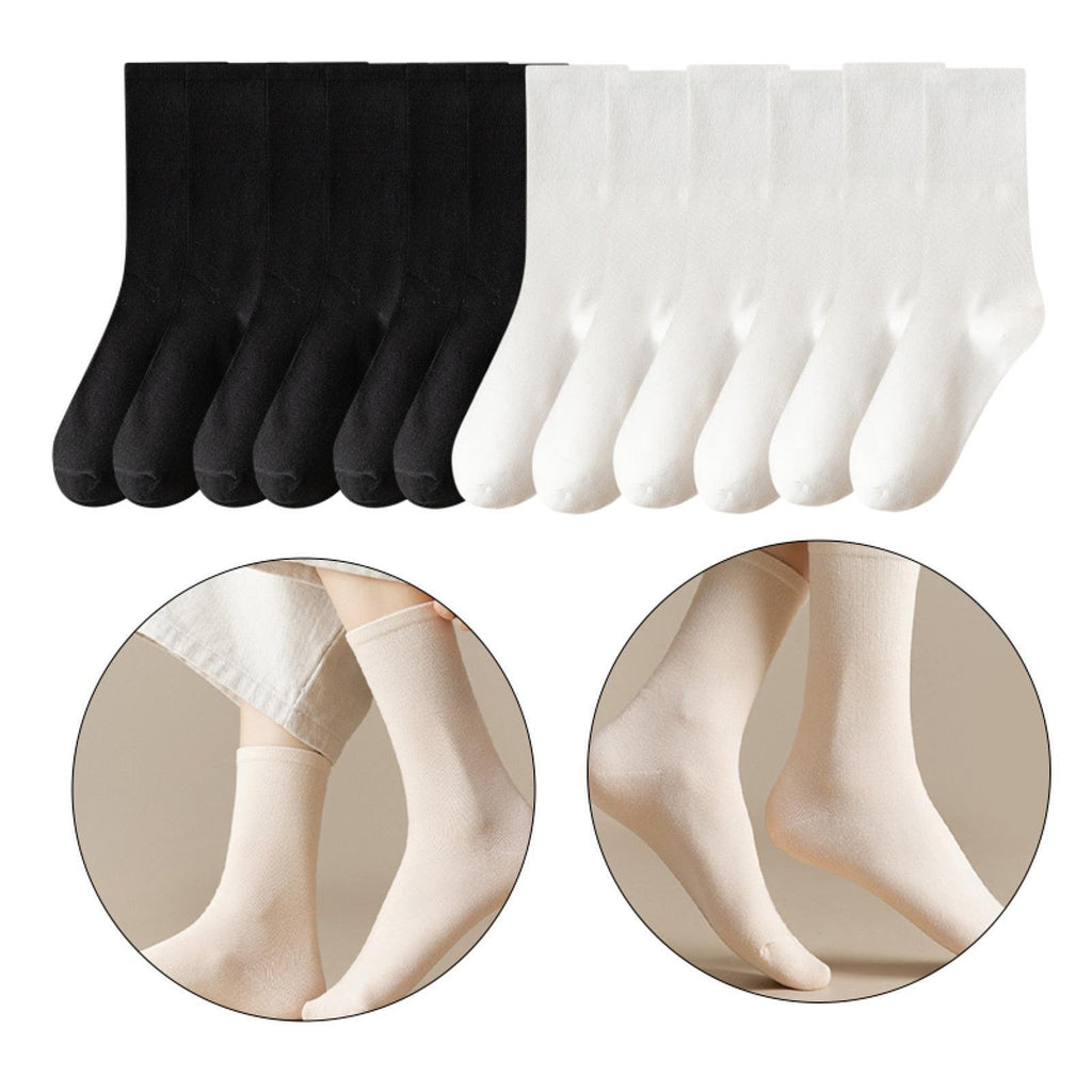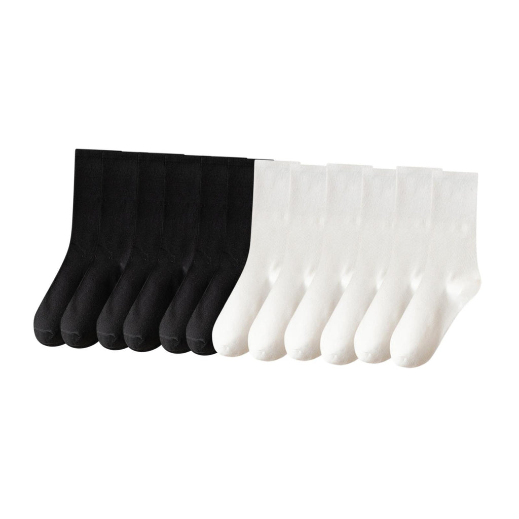 Maxbell 6 Pair Mid Calf Socks Stocking Elastic for Outdoor Activities Leisure Casual for Adults Women 3 White 3 Black