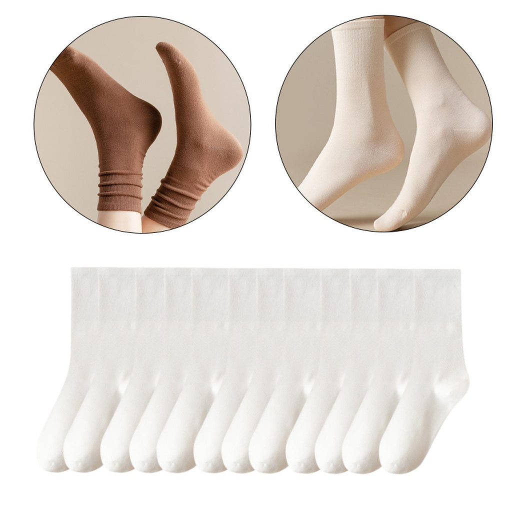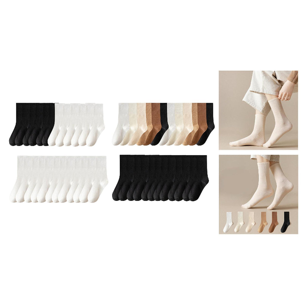 Maxbell 6 Pair Mid Calf Socks Stocking Elastic for Outdoor Activities Leisure Casual for Adults Women 6 White