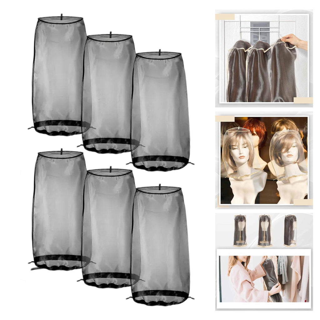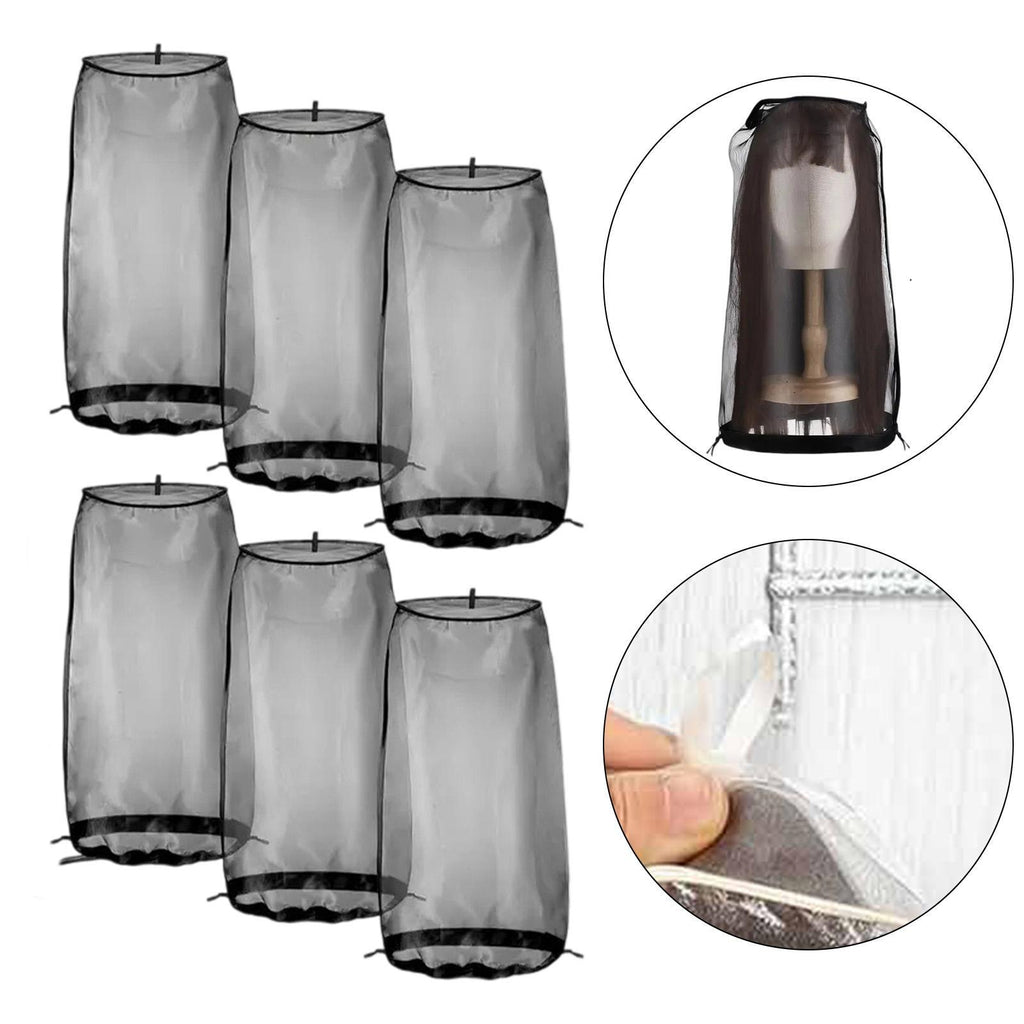 Maxbell 6Pcs Wig Storage Bag Portable with Drawstring for Travel Home Transportation black