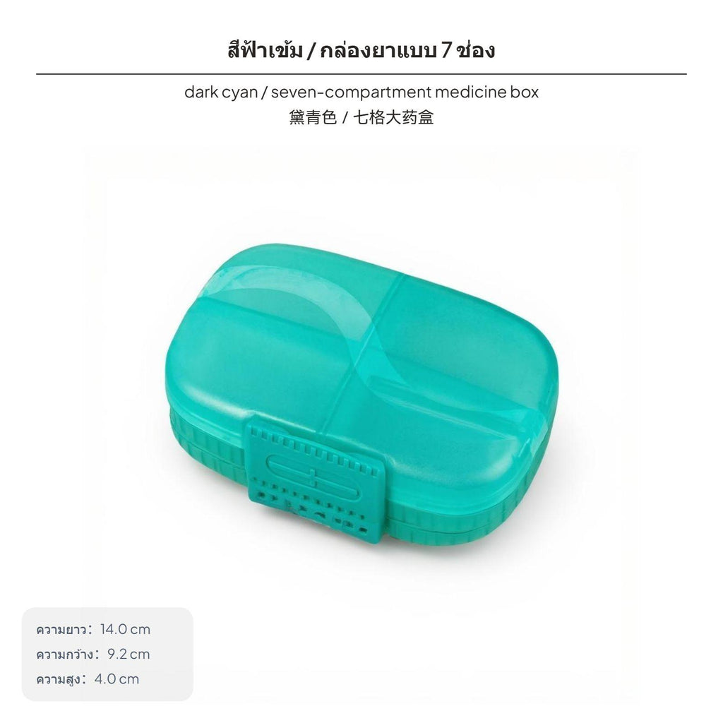 7-Compartment Portable Pill Organizer, Travel Medicine Storage Box, water-resistant Dark Cyan
