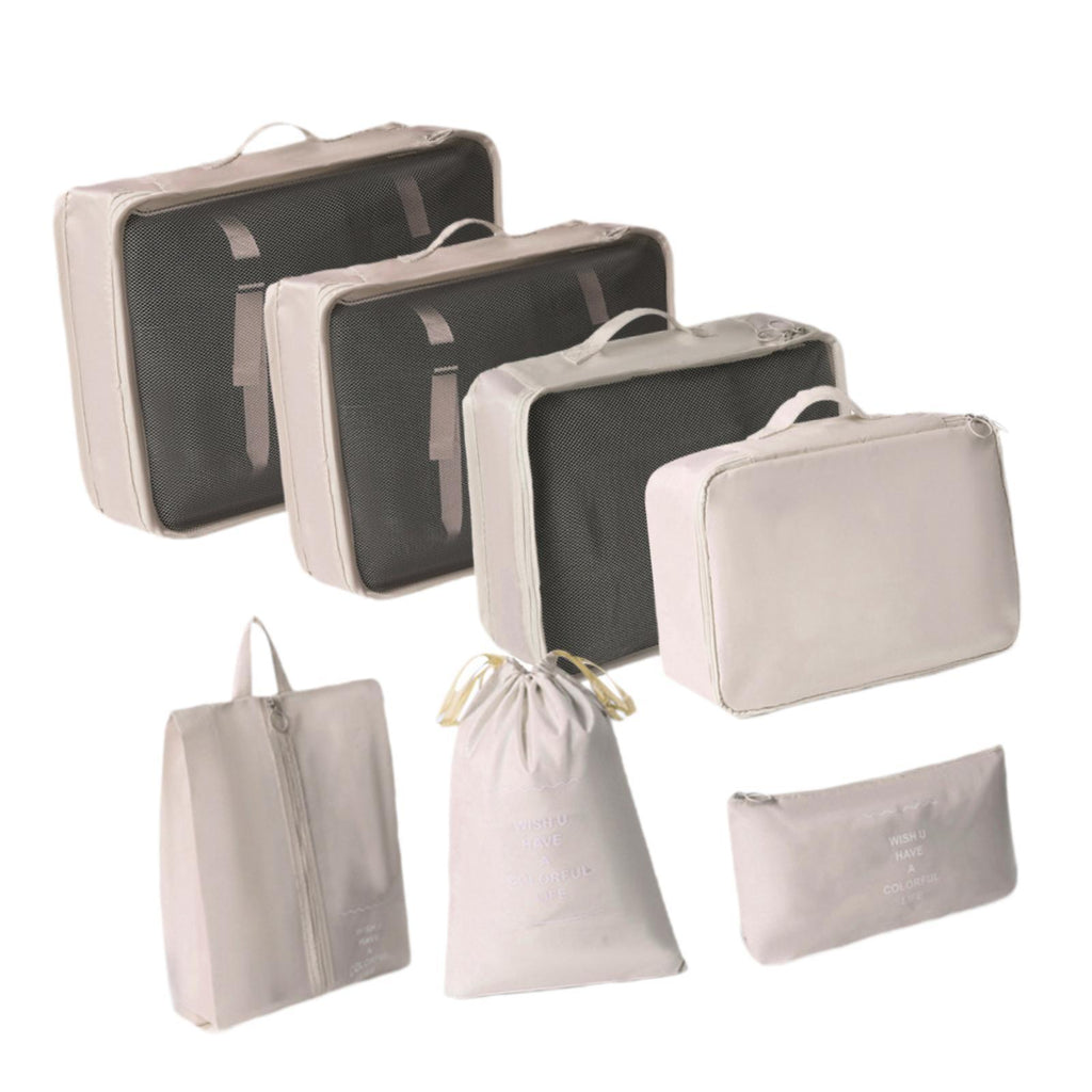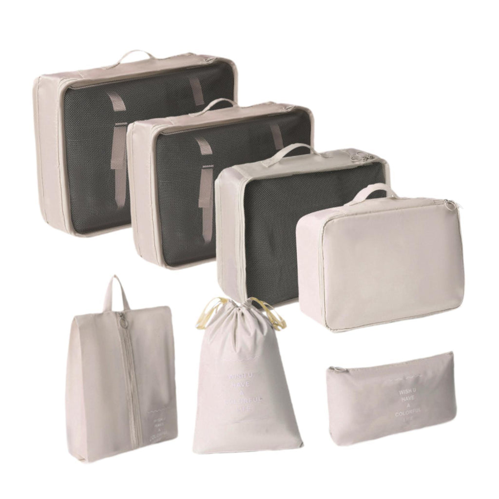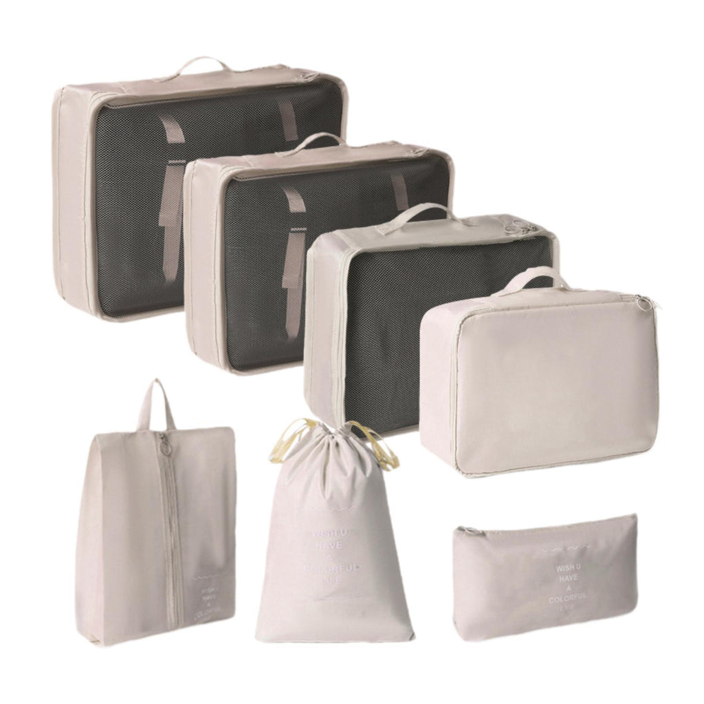 Maxbell 7x Packing Cubes for Suitcase Travel Bags for Family Breaks Beach Travelling Beige