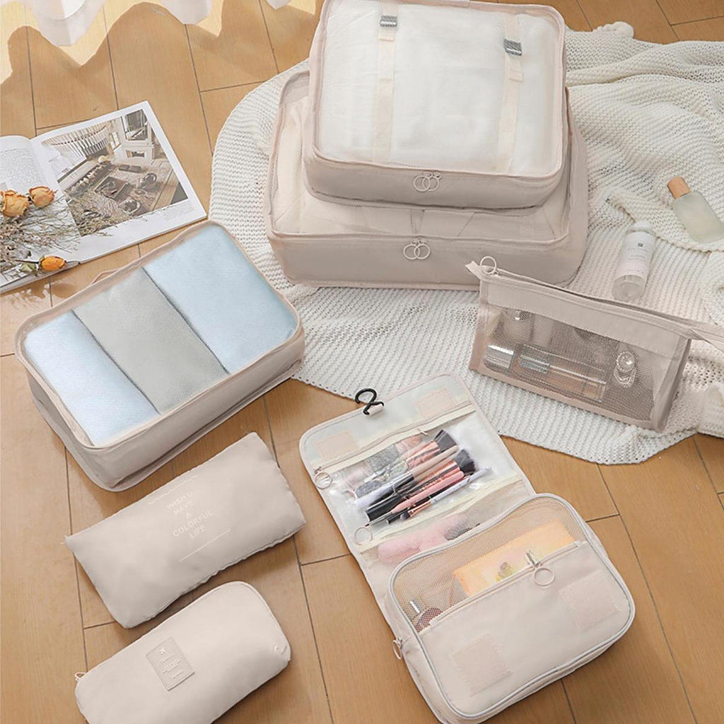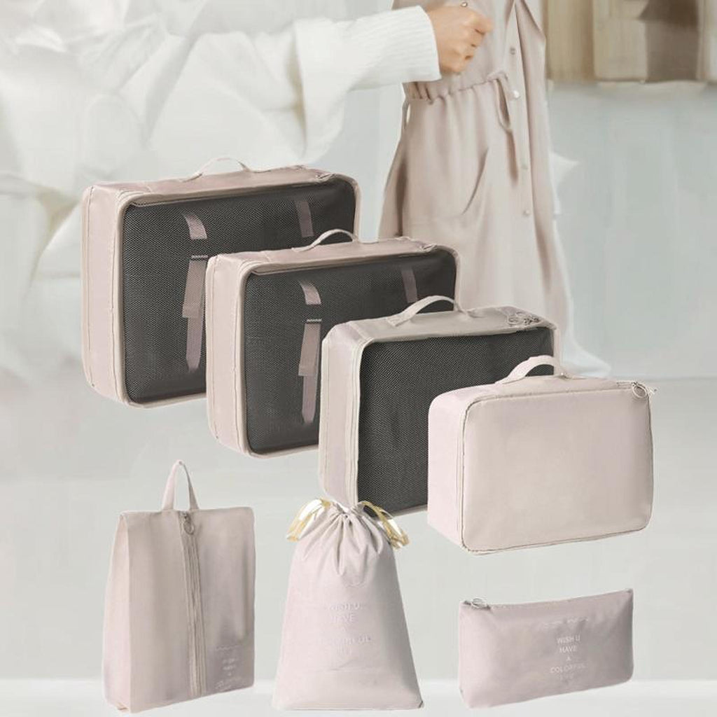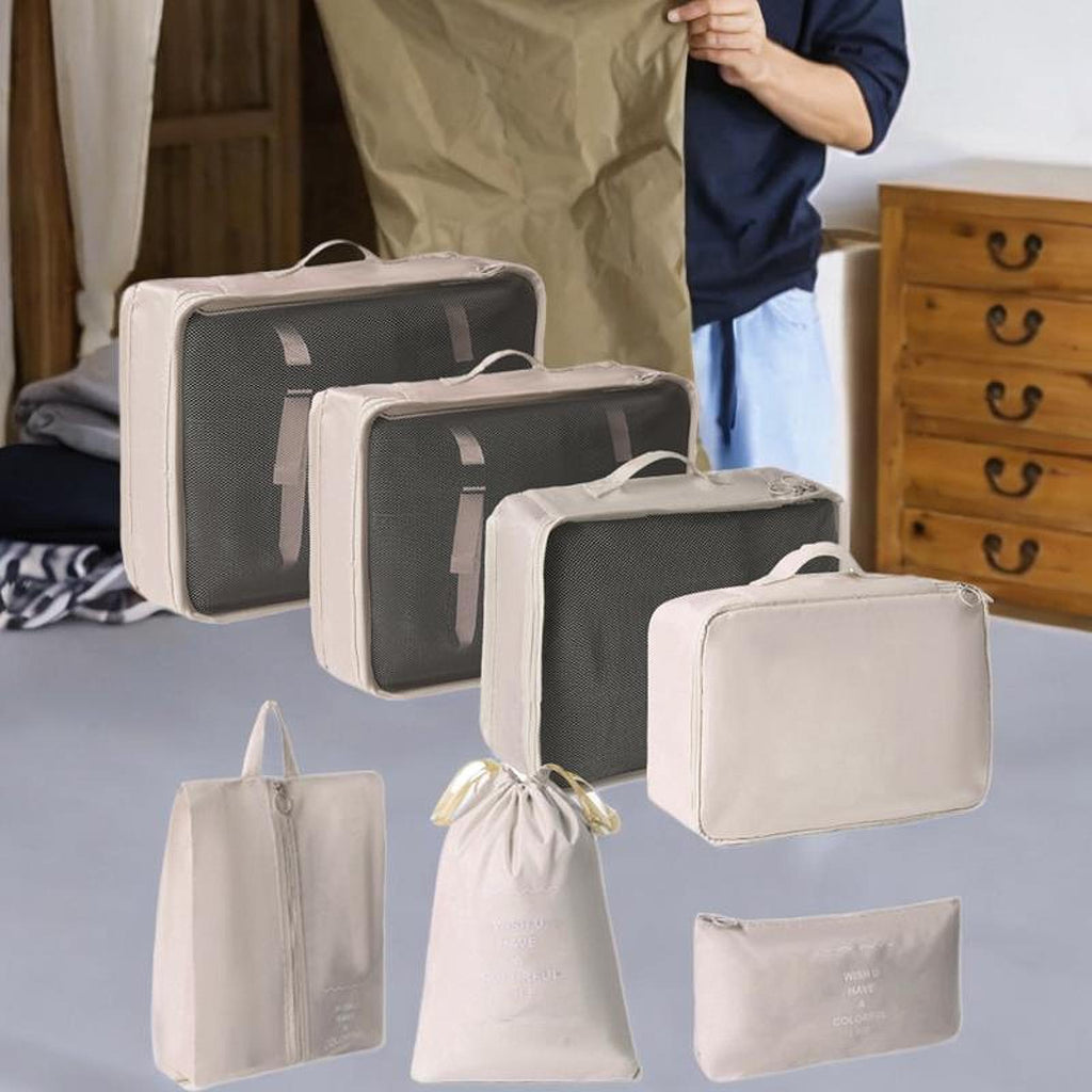 Maxbell 7x Packing Cubes for Suitcase Travel Bags for Family Breaks Beach Travelling Beige