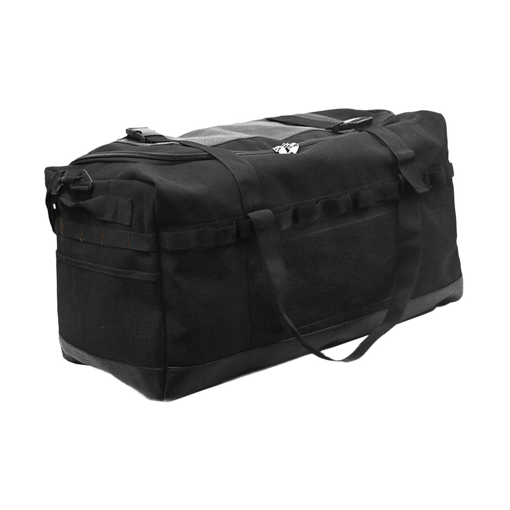 【Feature】Outdoor Equipment Carry Bag with adjustable double buckle design, with PU leather wrapped bottom and anti slip footrests, dual function as a duffel and backpack