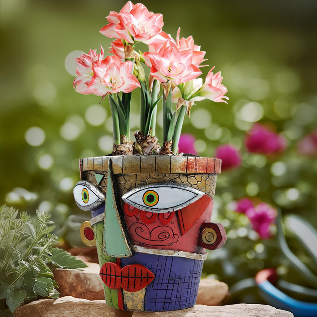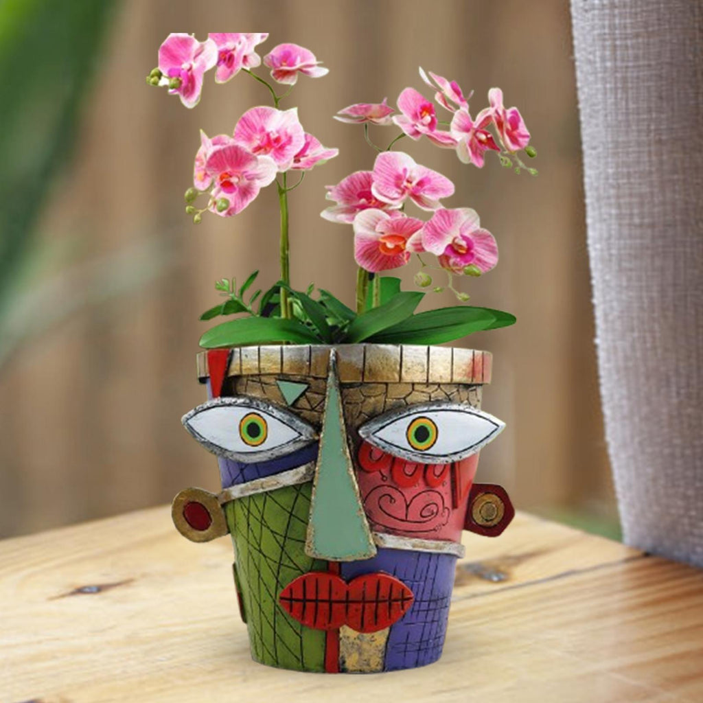 Maxbell Abstract Face Plant Pot Indoor Outdoor Cute Windowsill Resin Statue Ornament