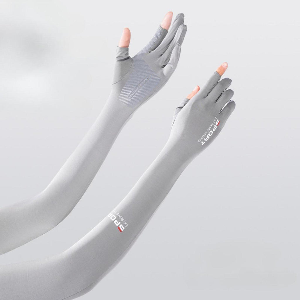 Maxbell Adjustable Arm Sleeves with Gloves Long Arm Covers for Fishing Women Outdoor gray