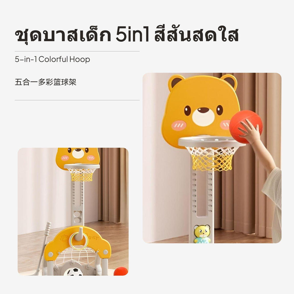【Versatile Sports Play】This adjustable kids basketball hoop combines basketball, soccer, ring toss, golf, and a music story machine, offering diverse activities for children aged 1-6 to enhance coordination and physical development.【Height Adjustable Feature】Easily adapts to different age groups with its adjustable height, supporting your child's growth and encouraging active play indoors.【Safe & Stable Construction】Made from high-density polyethylene (HDPE), the sturdy base can be filled with water or sand for extra stability, ensuring safe playtime for kids.【Adorable Bear Design】Bright colors and a cute bear shape attract children's attention, making playtime more engaging and fun.【Rich Early Learning Content】Built-in music story machine includes 85 educational items such as songs, animal sounds, numbers, and English words, perfect for home, playroom, or preschool environments.