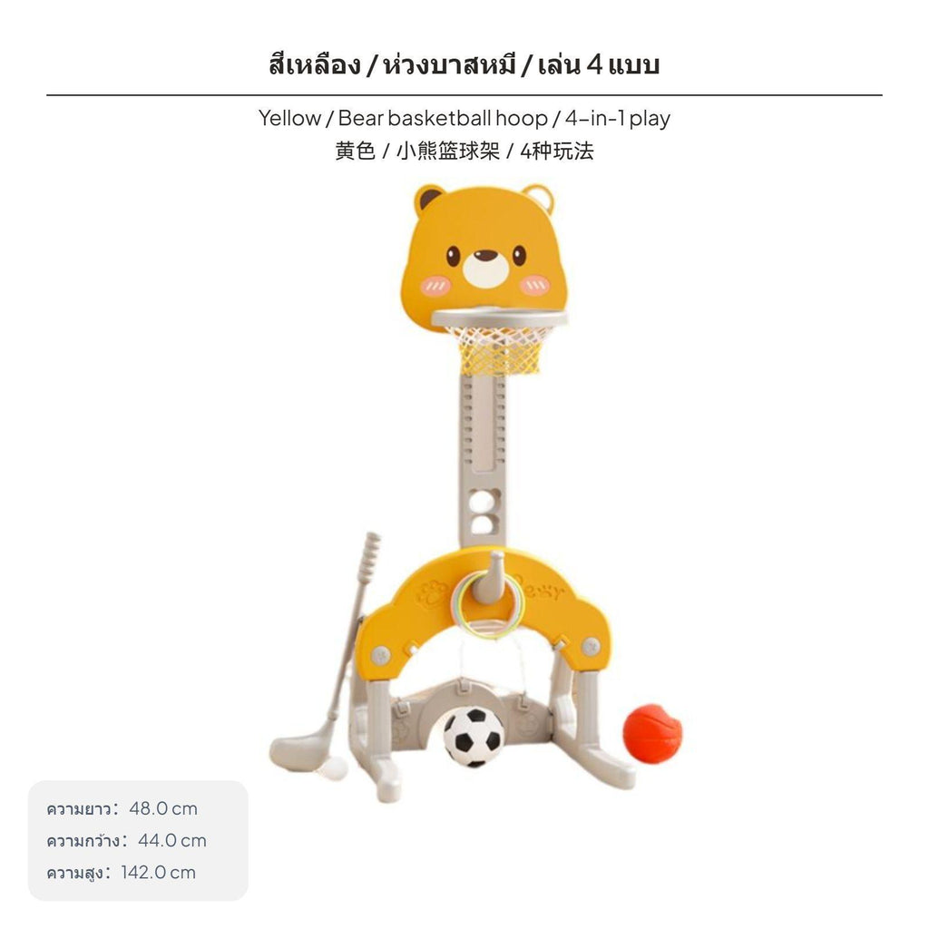 Adjustable Kids Basketball Hoop, 5-in-1 Sports Toy, Bear Design, Indoor BearHoop4in1 Yellow