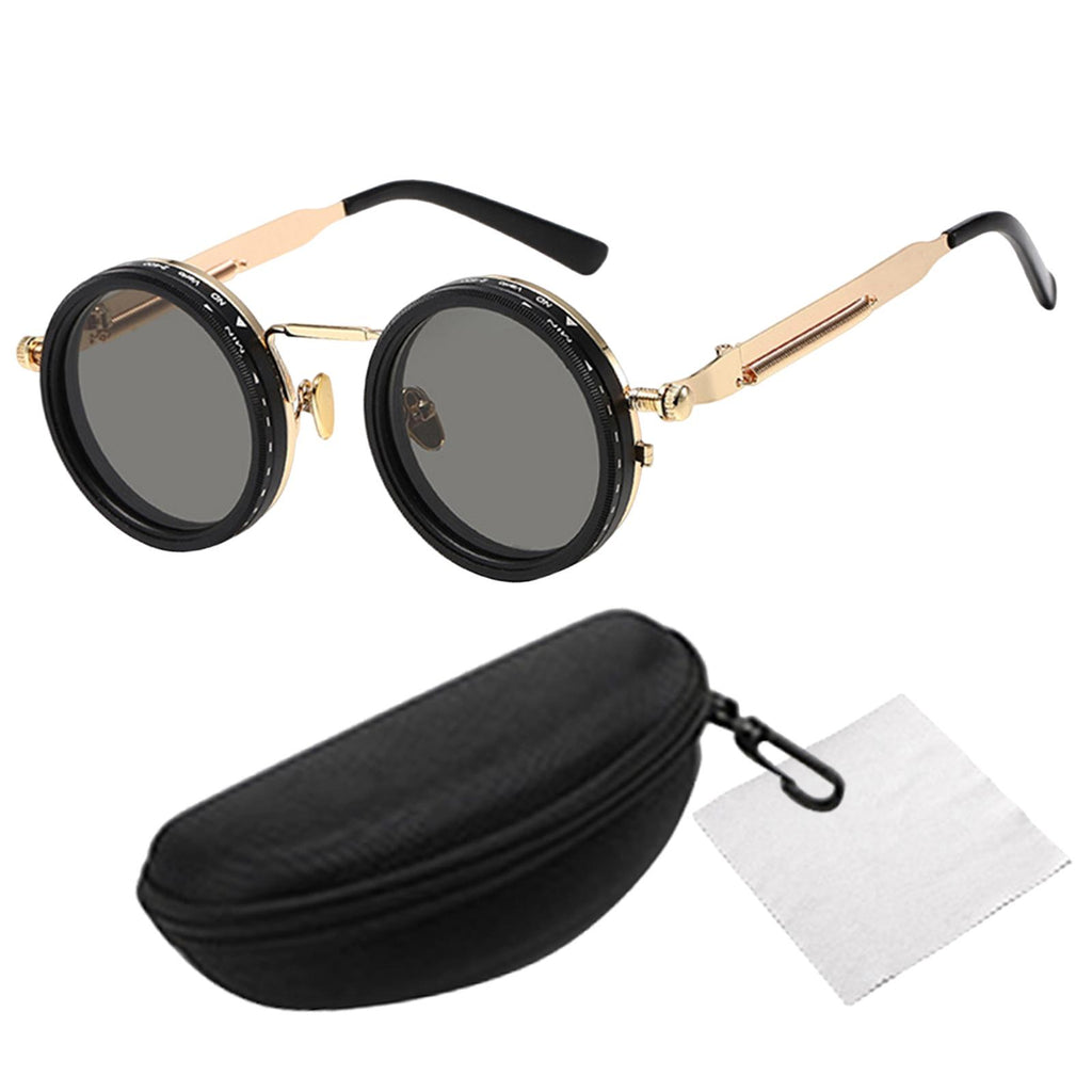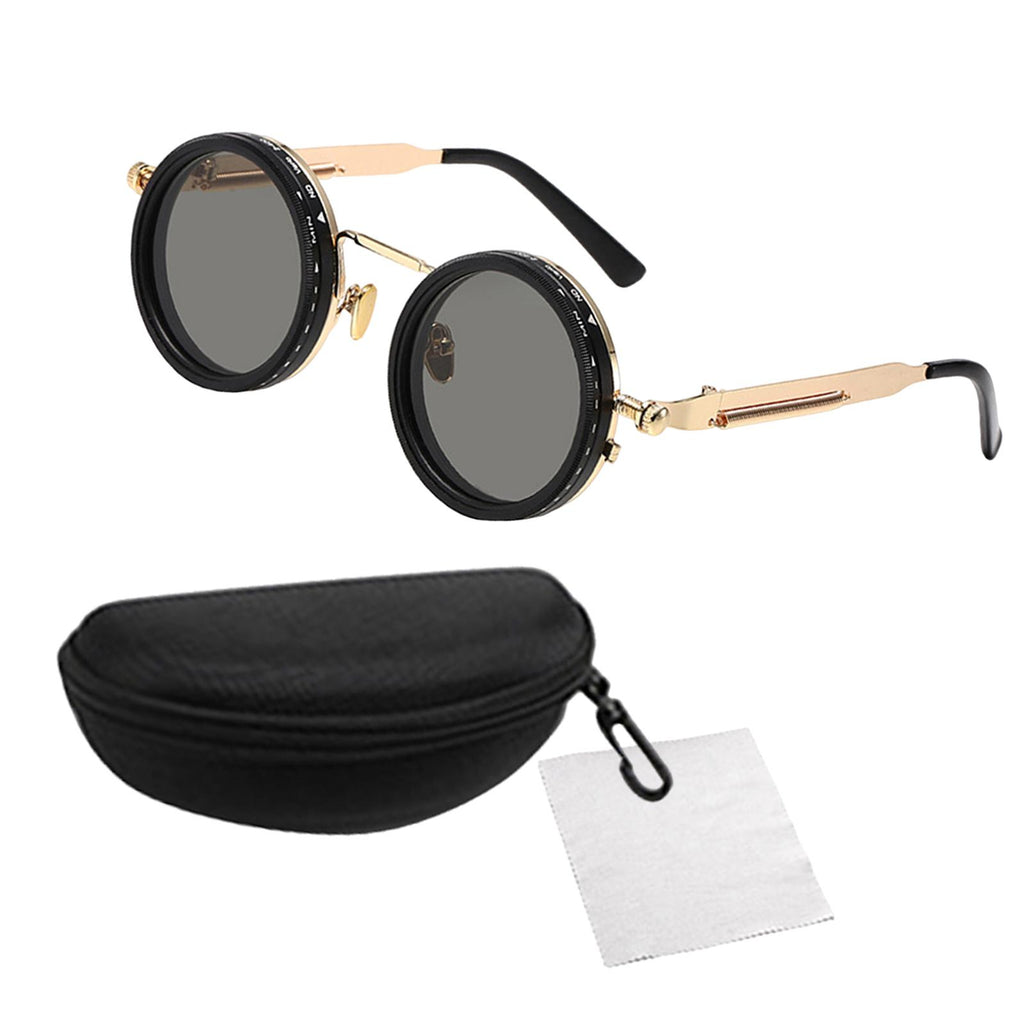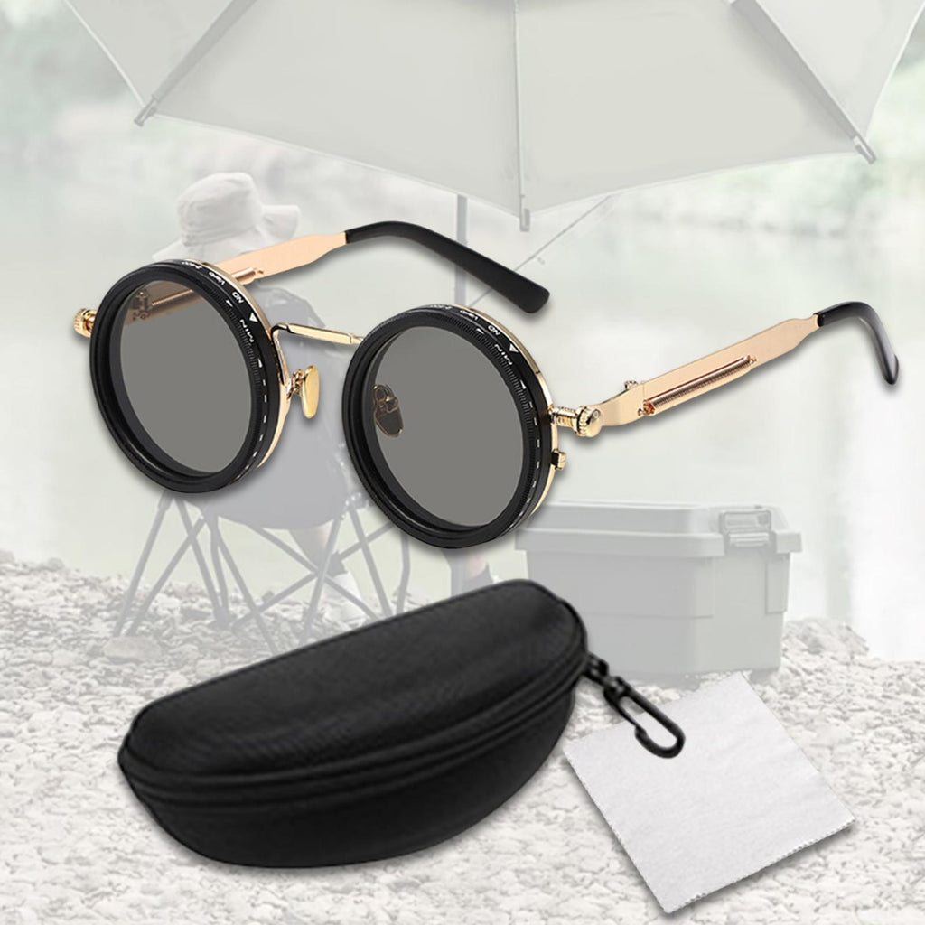 Maxbell Adjustable Polarized Sunglasses Rounded Glasses for Beach Outdoor Activities black gold