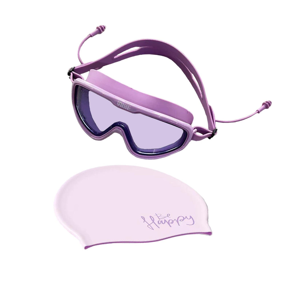【Complete Set with Accessories】: The package includes a silicone swim cap (24*21cm), a swim goggles (18*5*5cm), along with a pair of earplugs for added convenience and protection