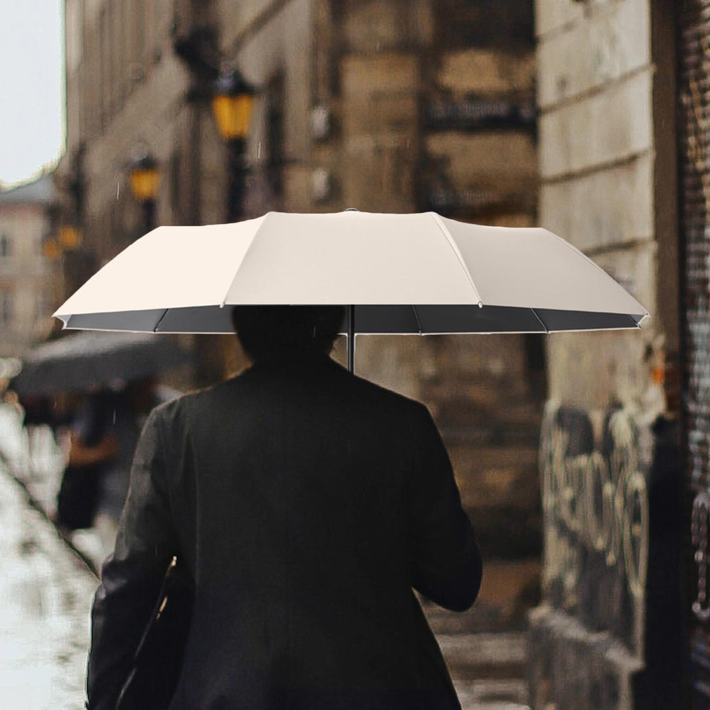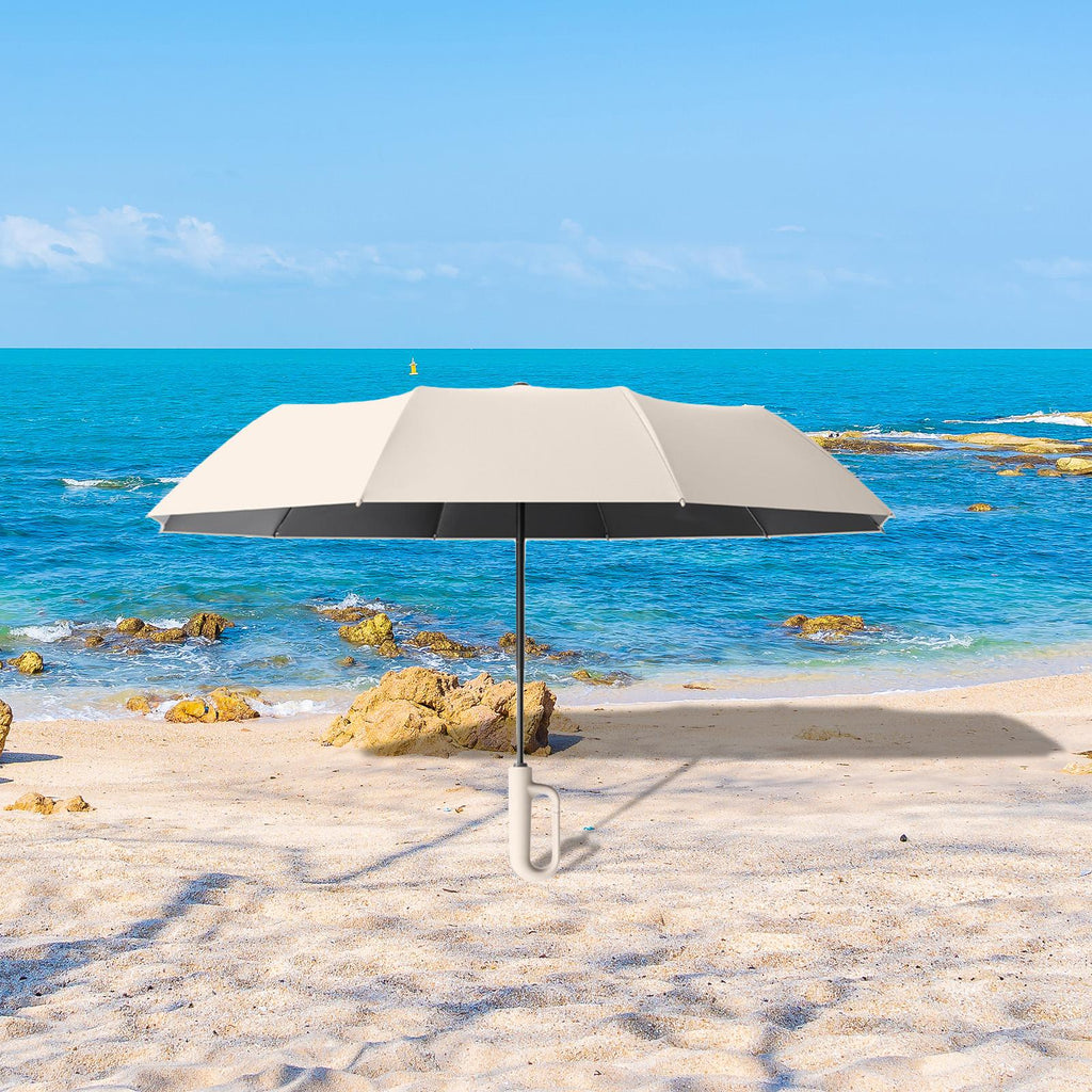 Maxbell Automatic Folding Umbrella Folding Travel Umbrella for Rain for Hiking Beach Beige 106cmx71cm