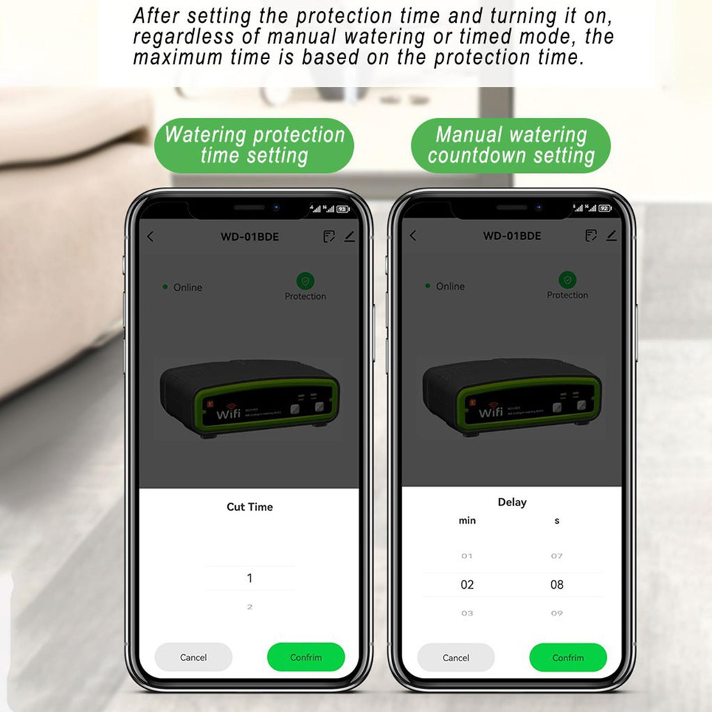 【Security Time Safeguard】: Set a maximum safeguard time to prevent overwatering, applicable to both manual and timed watering modes, ensuring plant security by adhering to preset limits