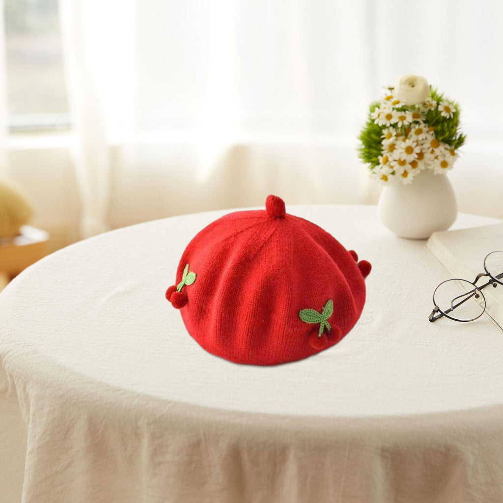 【Lovely Baby Hat】This adorable baby beret hat features knitted cherry decoration, adding a cute touch to your child's outfit.