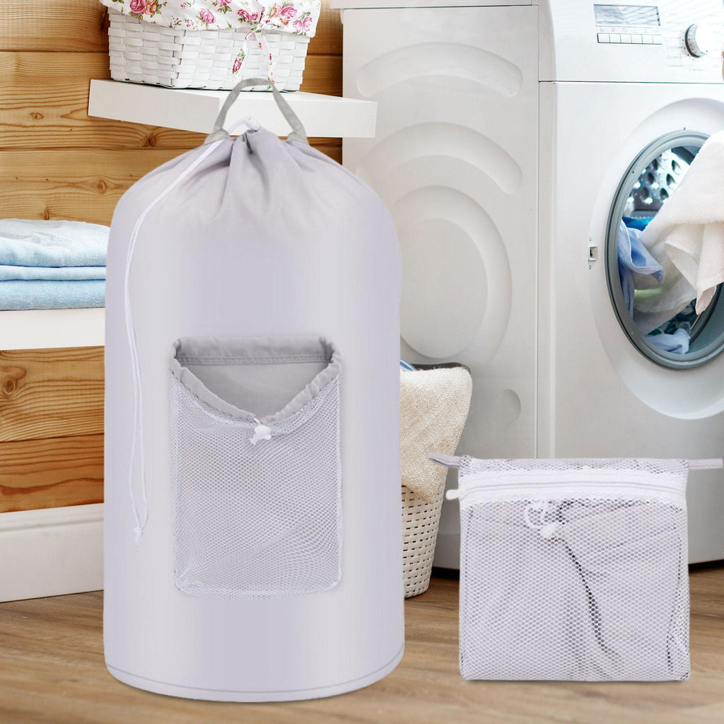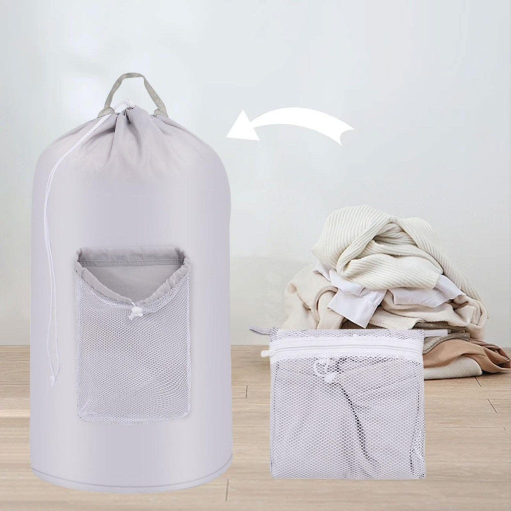 - 【Versatile】: Clothes hamper bag with drawstring closure for dorm, travel, laundromat, apartment, comes with a extra storage pouch that can be folded into it when not in use