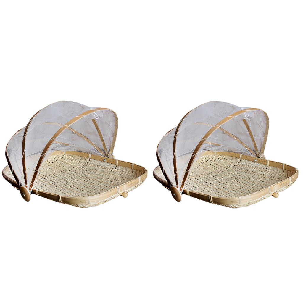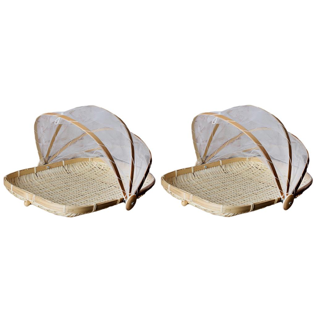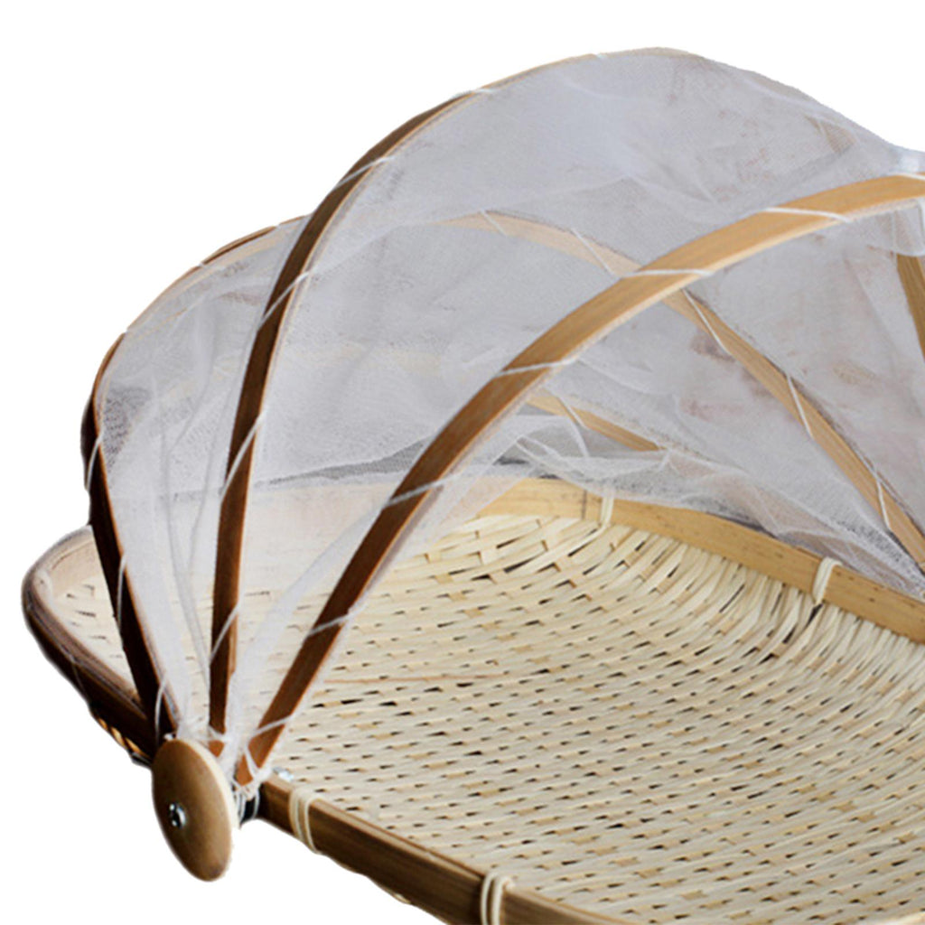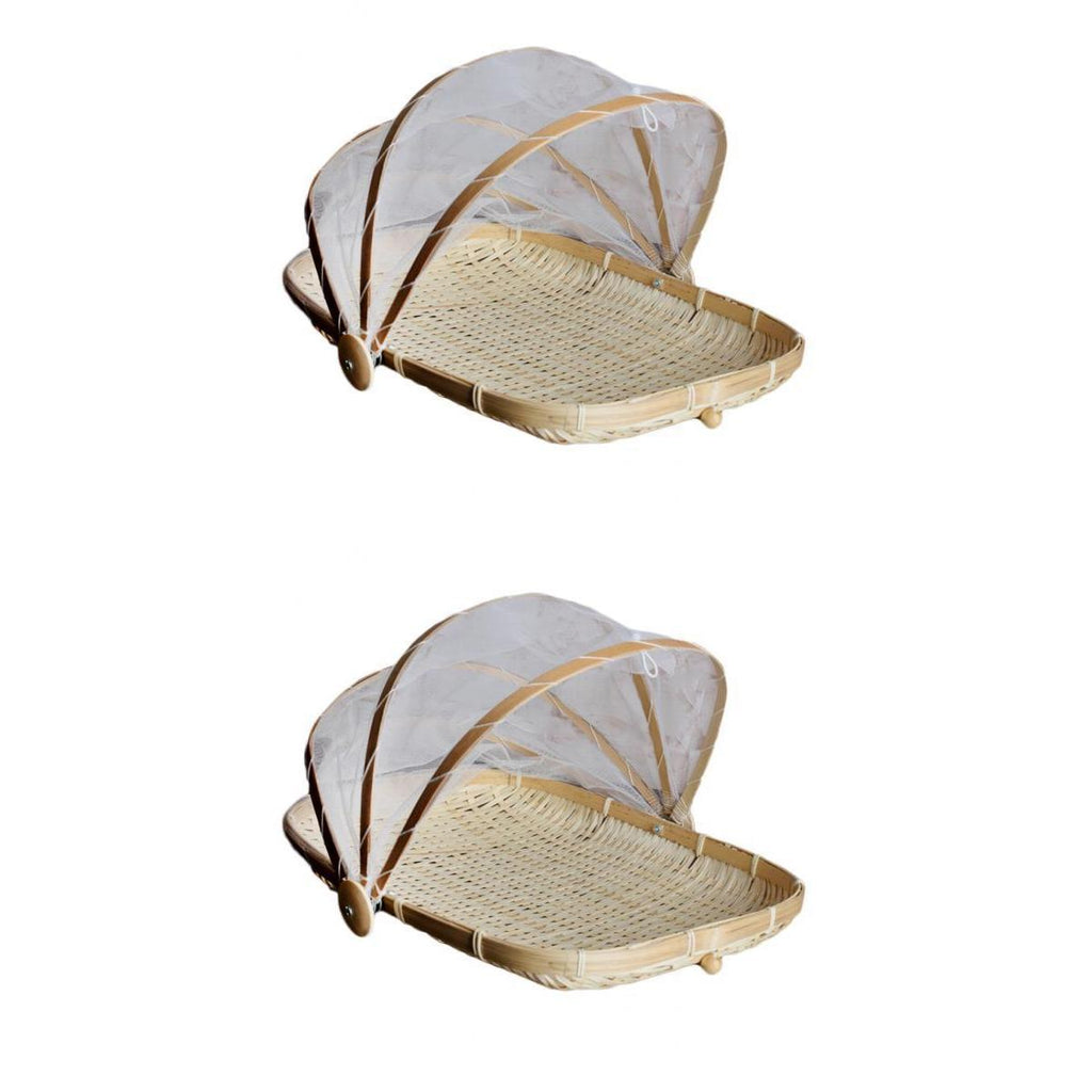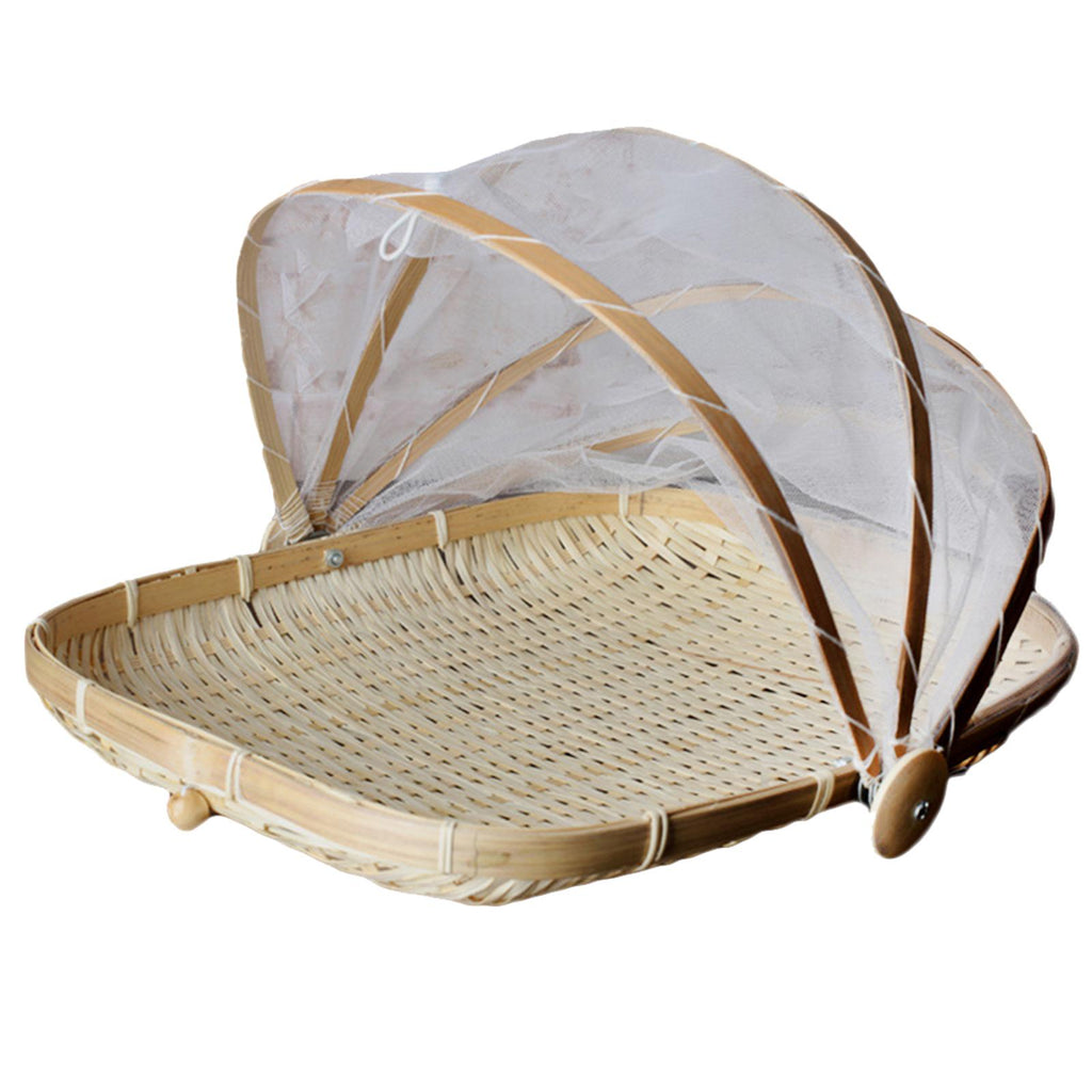 Maxbell Bamboo Tent Basket Serving Food Outdoor Picnic Pop Up Mesh Net Cover L + S