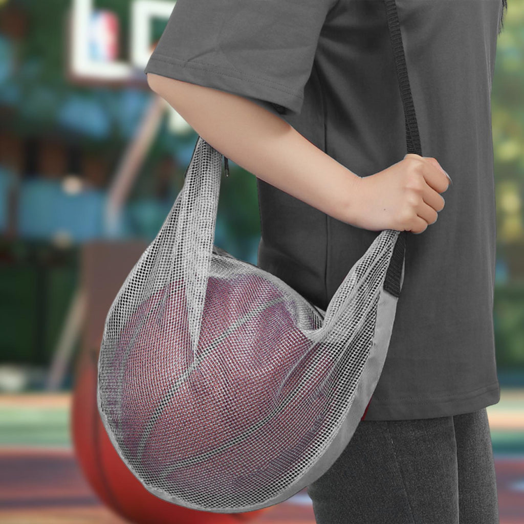 Maxbell Basketball Carrier Bag Carrying with Pocket Ball Bag Mesh for Soccer Outdoor Silver Gray