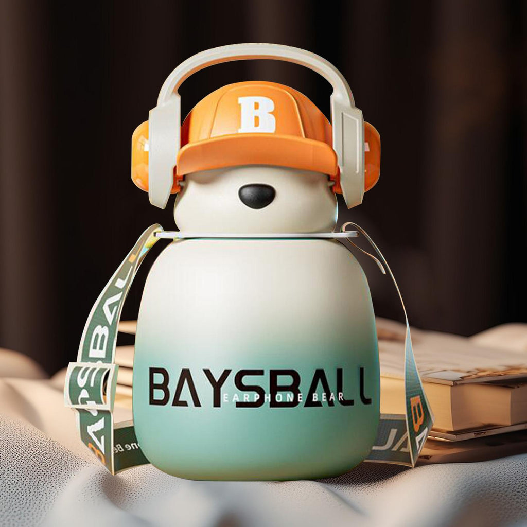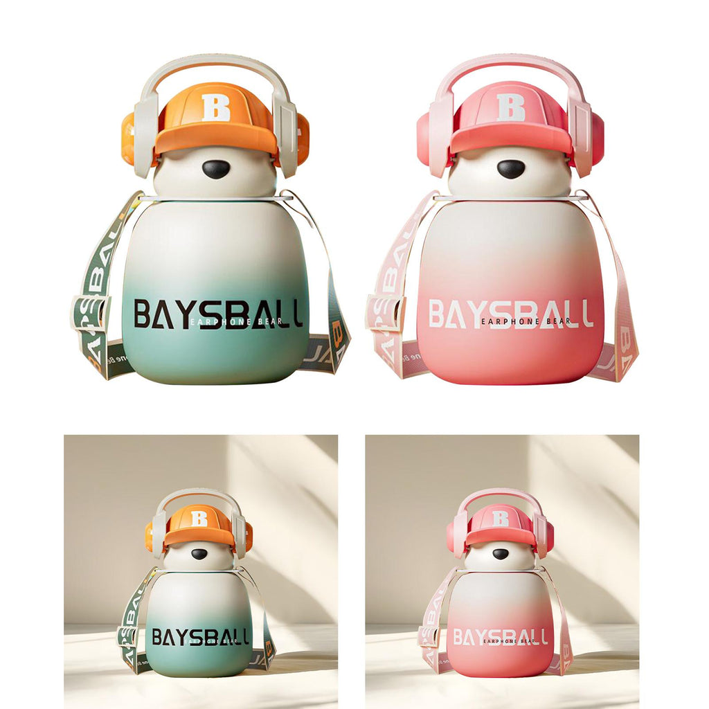 【Cute Cartoon Pattern】: The outdoor drinking bottle features a cute and fashionable cartoon bear wearing headphones pattern that easily attracts children's attention, adding fun to their daily water routine.