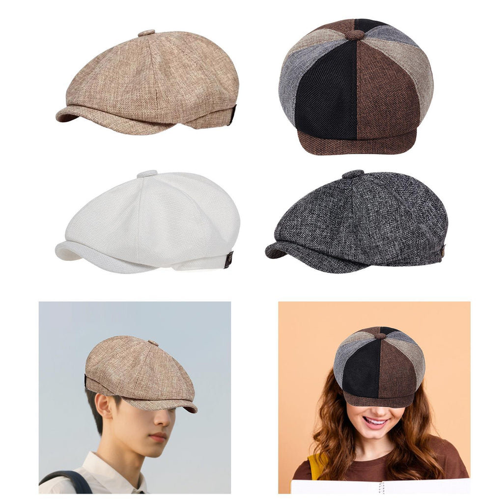 Maxbell Beret Hat British Spring Painter Hat Cabbie Hat for Adults Traveling Camping Beige