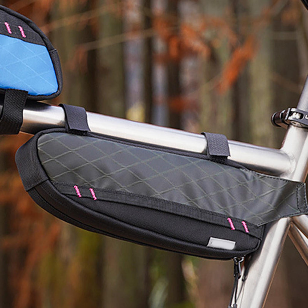 【Storage Bag】: Bicycle front frame bag, approx. 24cmx9cmx6cm/9.45inchx3.54inchx2.36inch, suitable for storing your phone, cards, keys, wallets, repair tools and other small items, easy to put and access