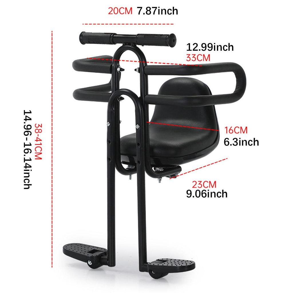 【Quality material】: Crafted from quality carbon steel, this child bike front saddle is sturdy and wear resistant, making it suitable for long term repeated use