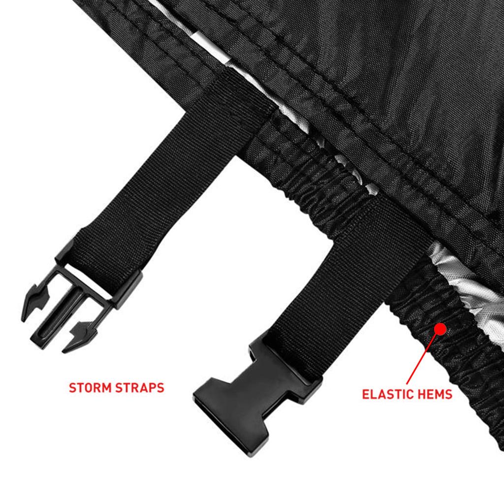 Premium material coating: Made of 210T oxford cloth, waterproof polyester with PU and UV coating protects bicycles from weather, dust, dirt and sun damage. Ultraviolet-proof up to 50+.