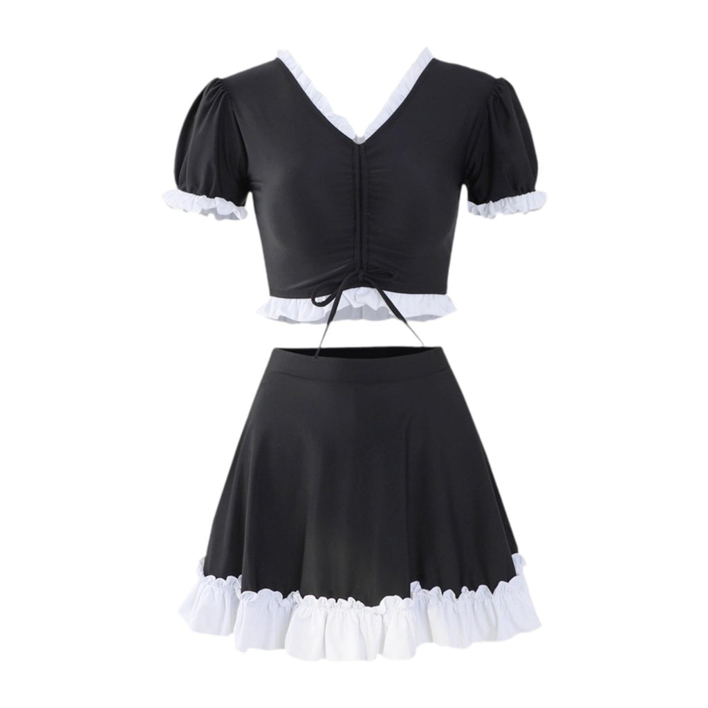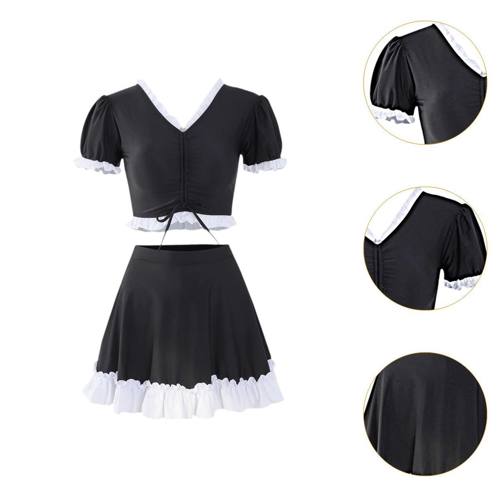 【Stylish design】: Featuring an elegant and fashionable look, the swimdress boasts a simple black and white color scheme with ruffle and drawstring details, making it a nice accessory for your summer beach trips