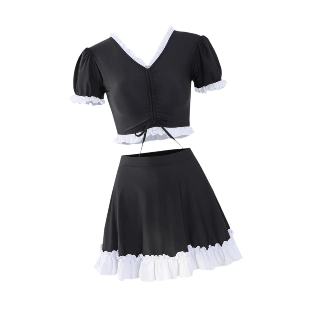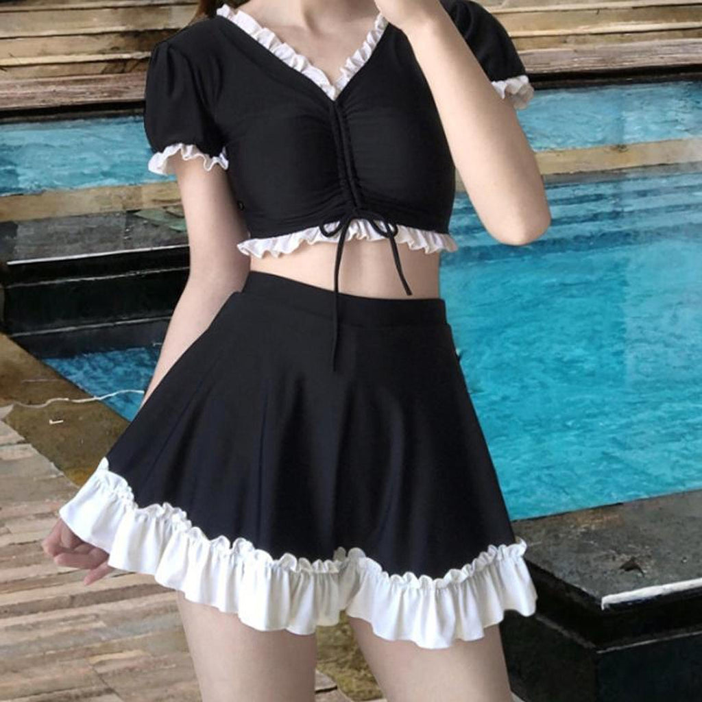 【Stylish design】: Featuring an elegant and fashionable look, the swimdress boasts a simple black and white color scheme with ruffle and drawstring details, making it a nice accessory for your summer beach trips
