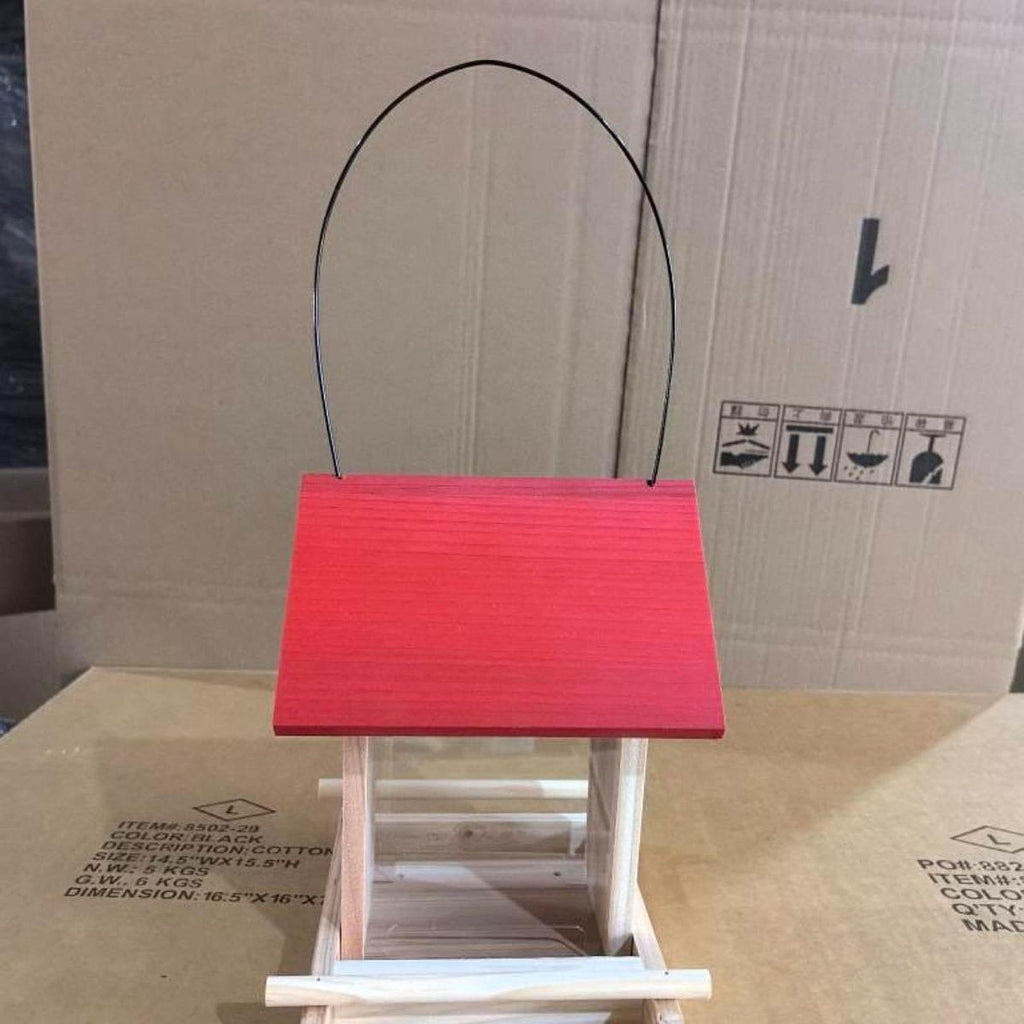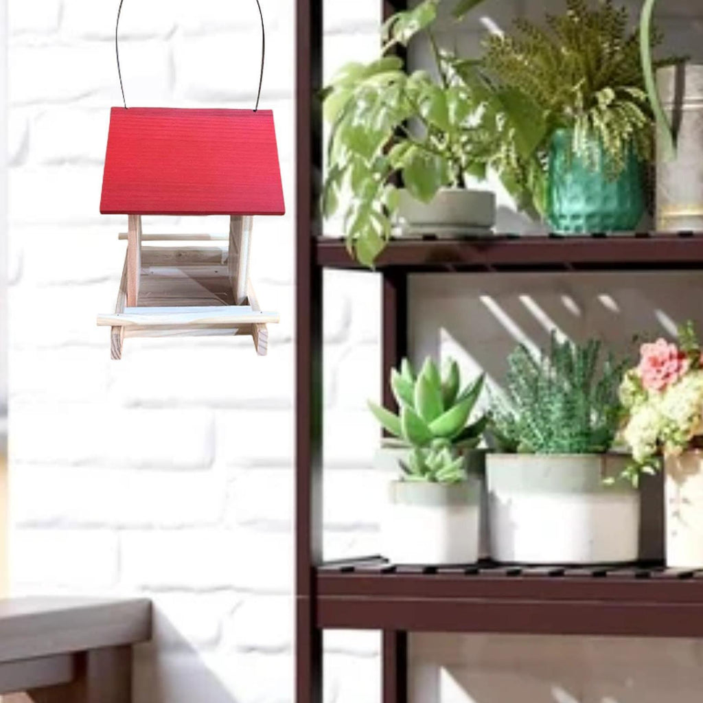 【Red Roof Design】: The humanized rainproof and sun anti roof provides safe food for birds. The fixed small wooden stick design makes it easy for birds to stay here to eat.