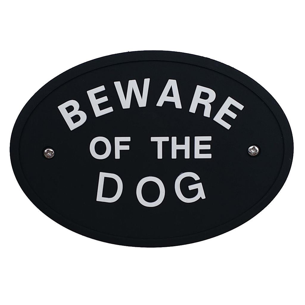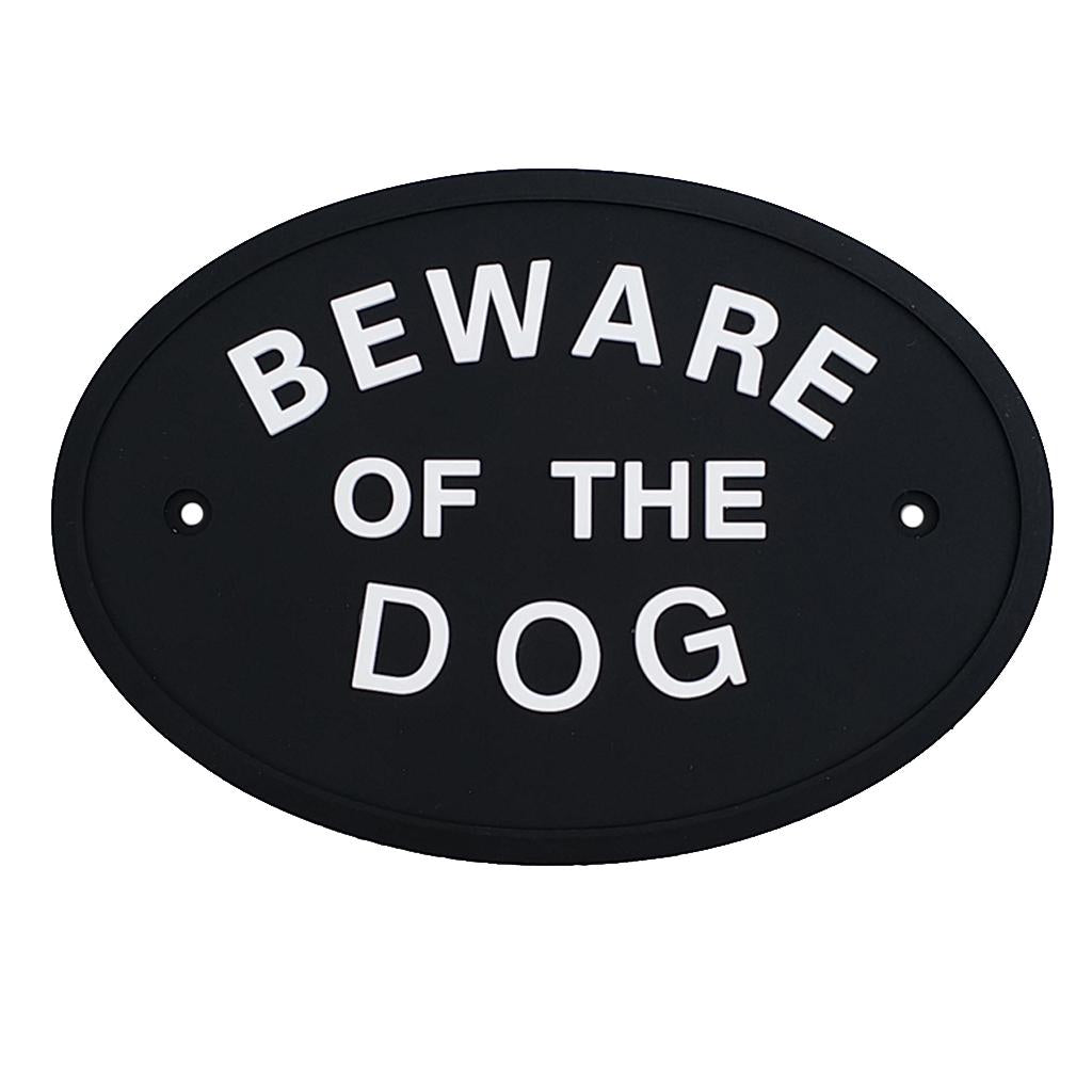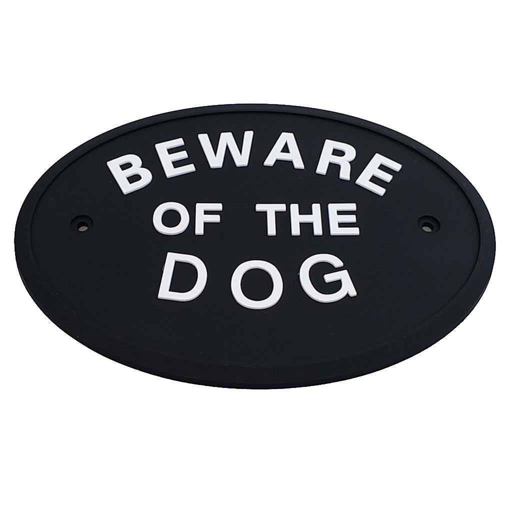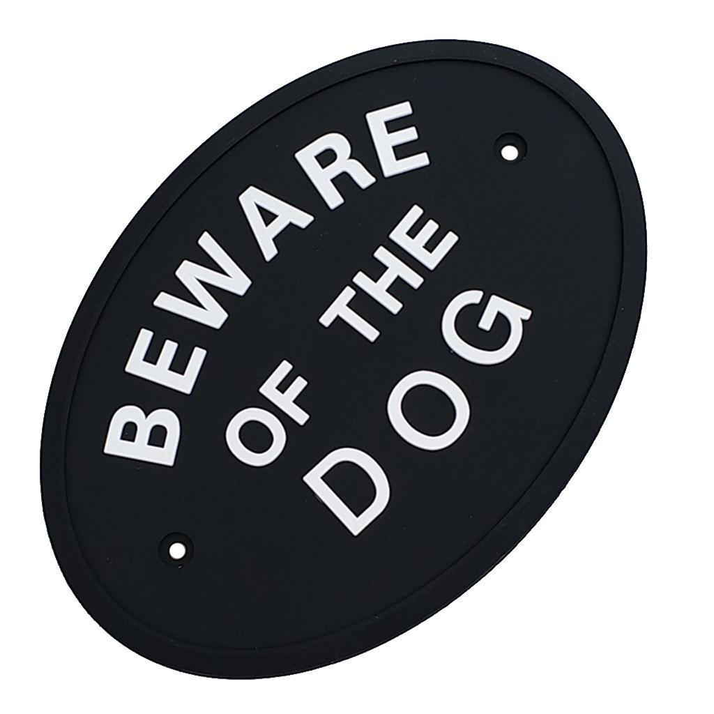 Max Black Oval Statement Plaque Outdoor Garden Wall Sign BEWARE OF THE DOG