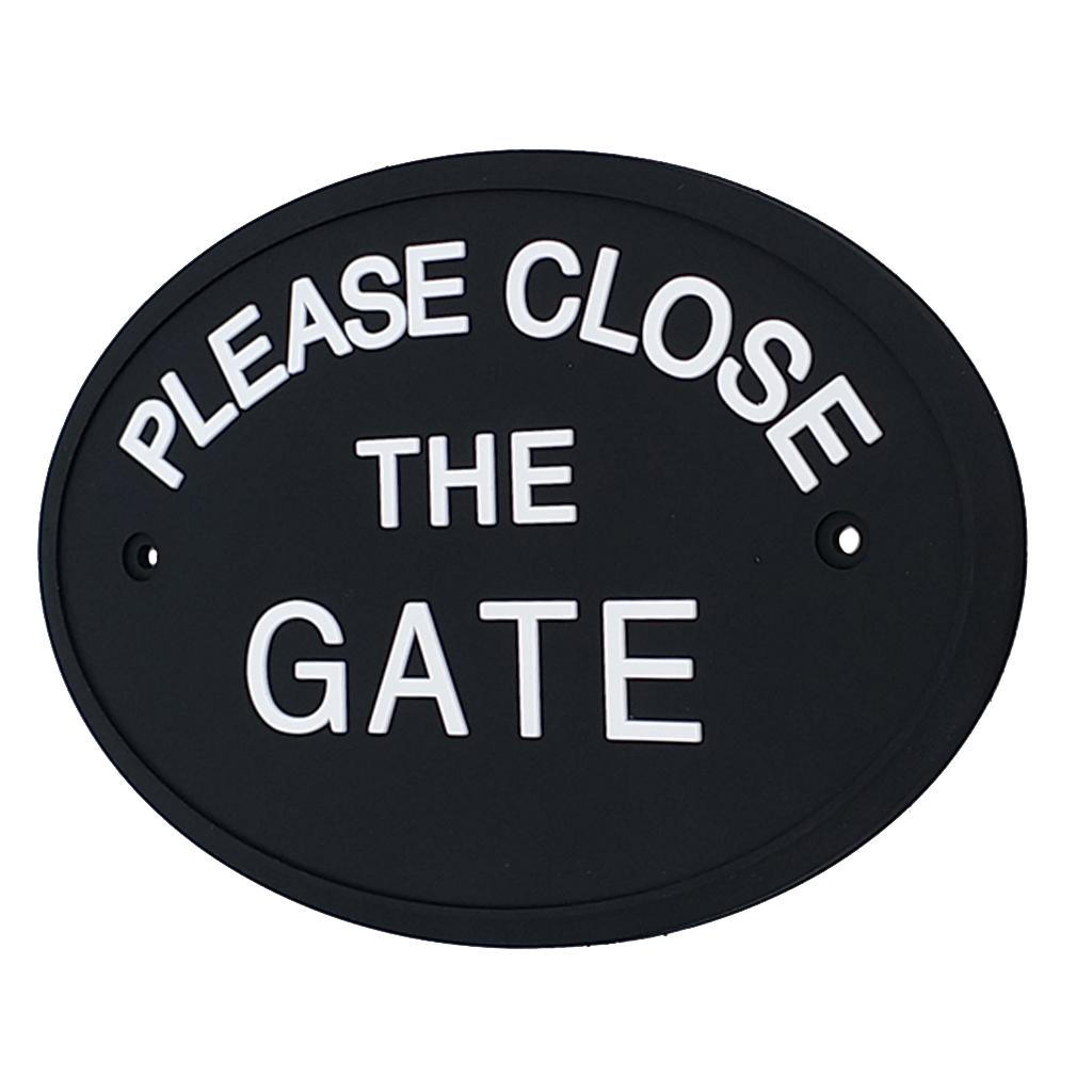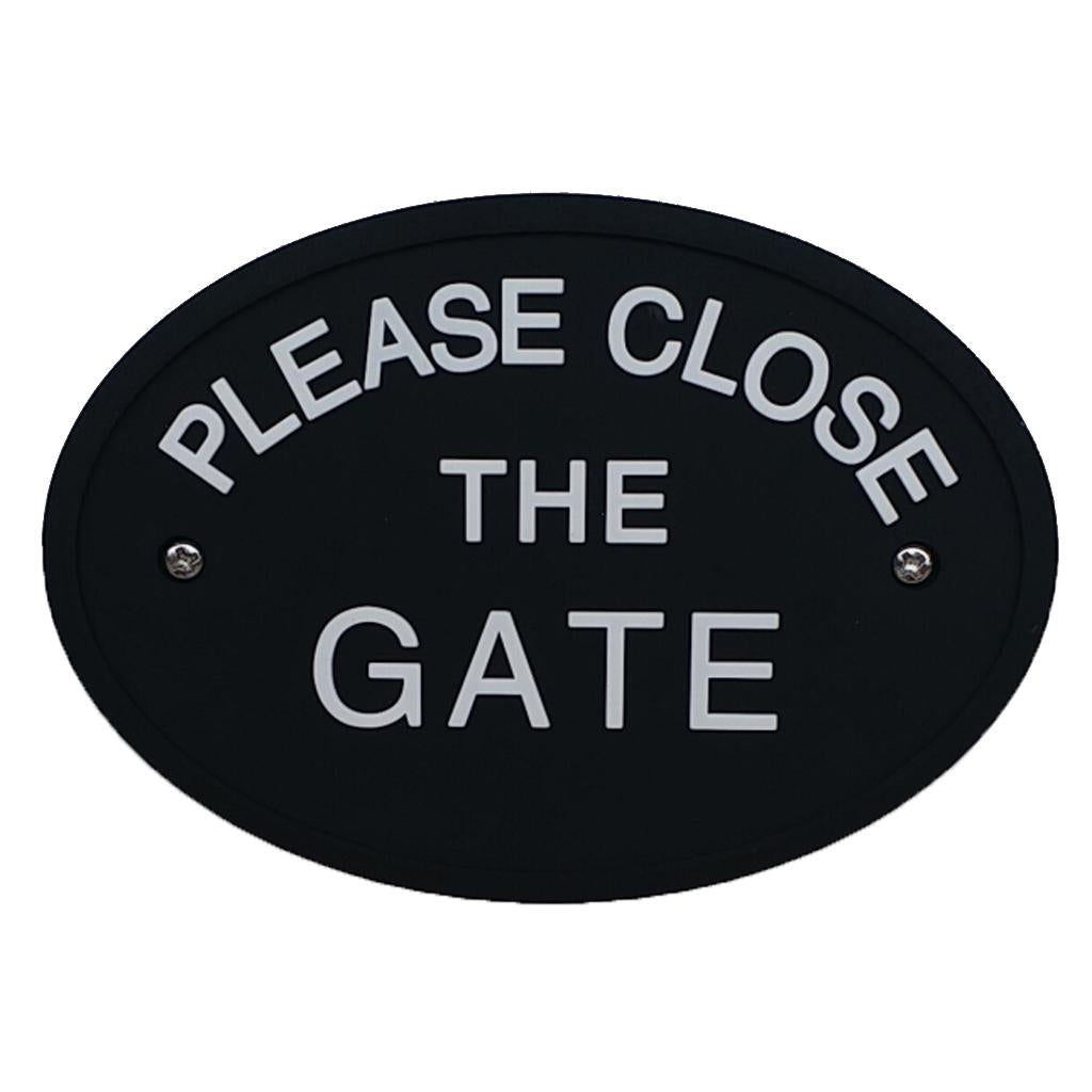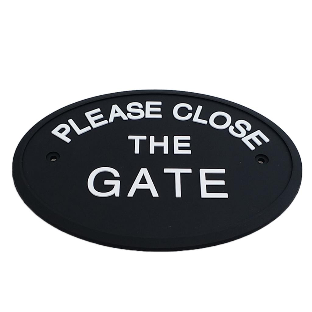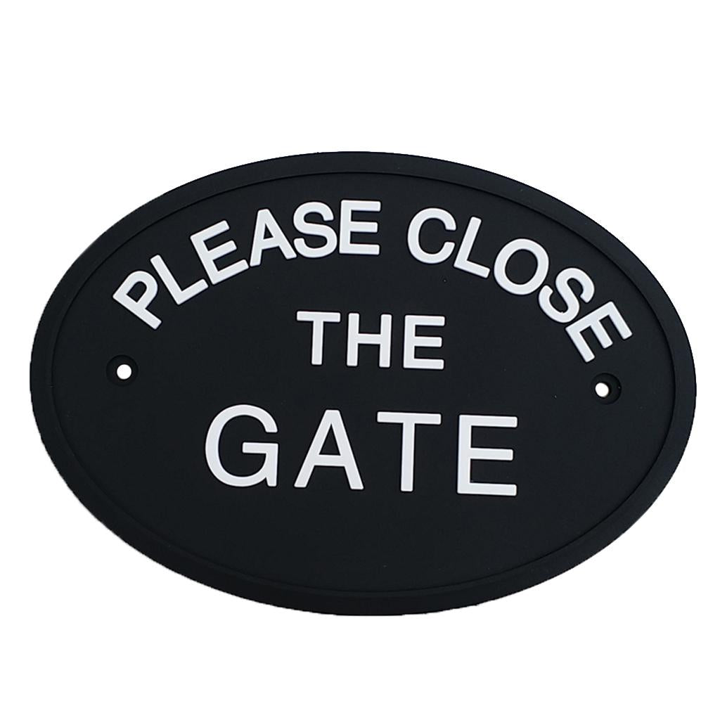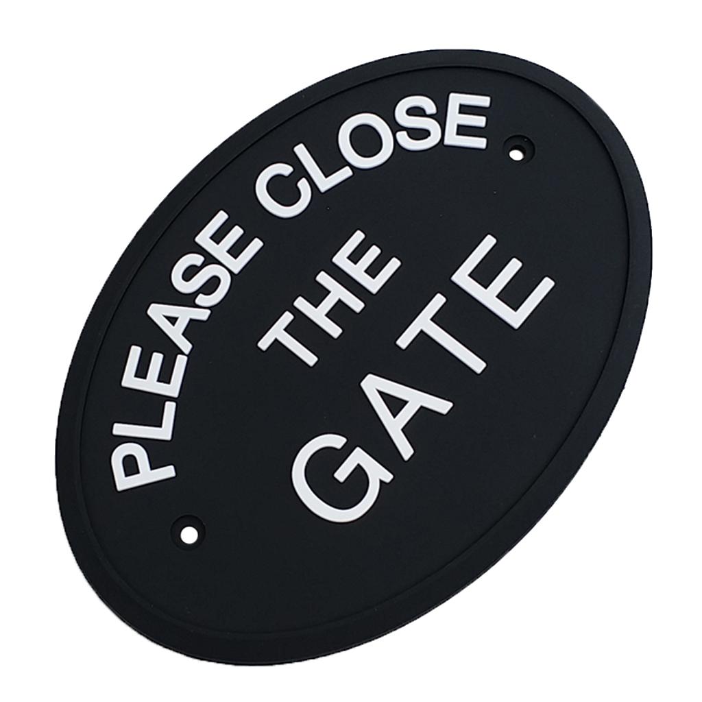 Max Black Oval Statement Plaque Outdoor Garden Wall Sign PLEASE CLOSE THE GATE