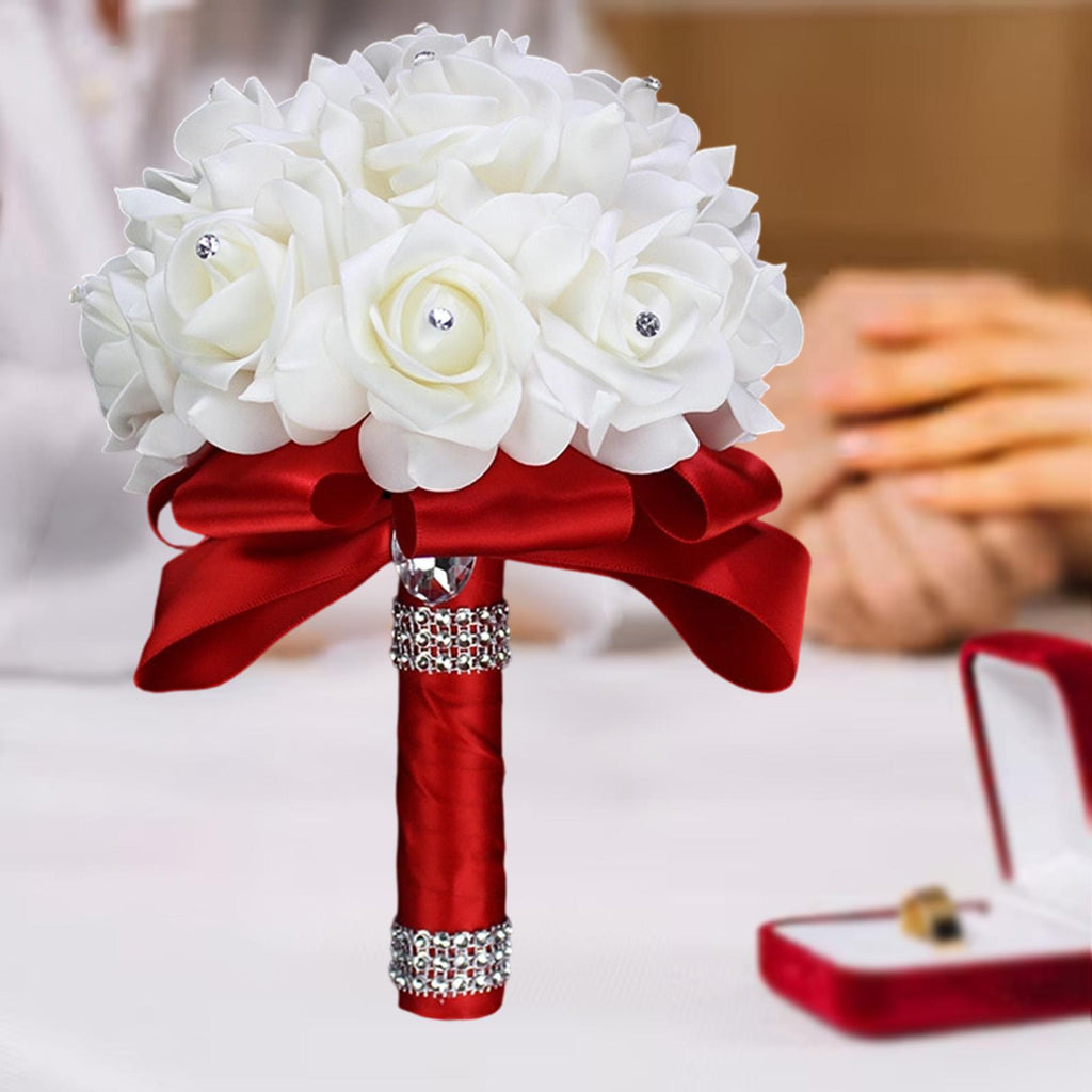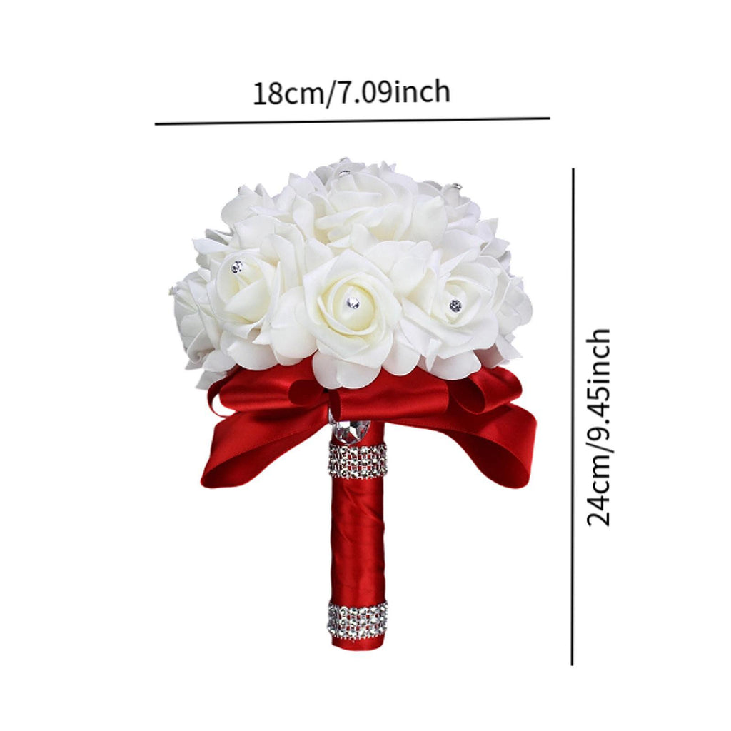 Maxbell Bride Holding Bouquet Romantic Wedding Bouquet for Party Outdoor Anniversary Red