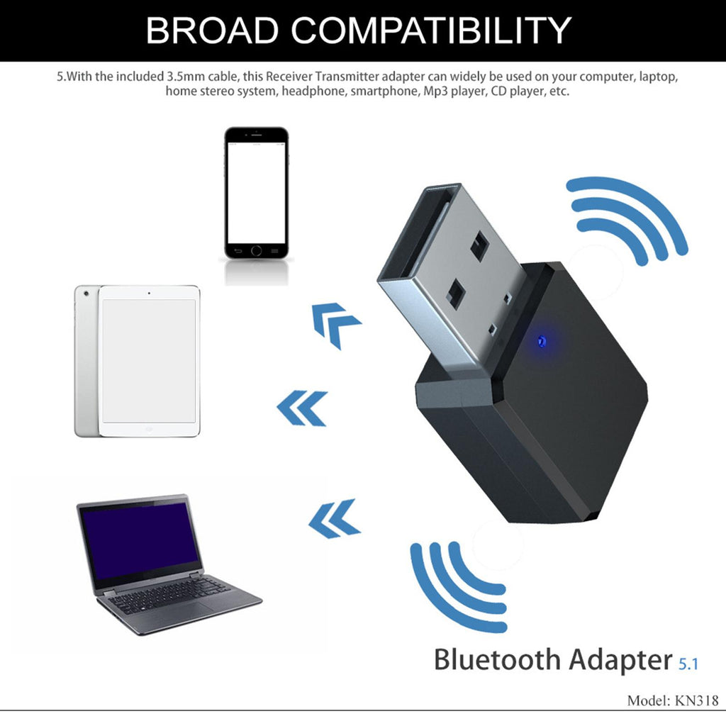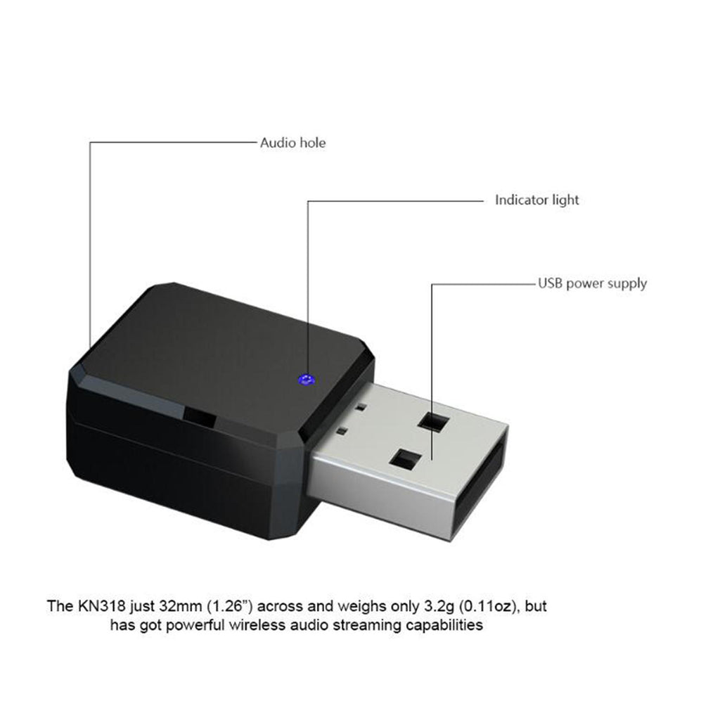 【Advanced Technology】: This V5.1 Audio Converter Receiver features V5.1 technology for stronger compatibility. It comes with USB and AUX two outputs, built in stereo microphone, supporting handsfree calls on mobile phones. Please note it cannot be used by plugging into a computer.