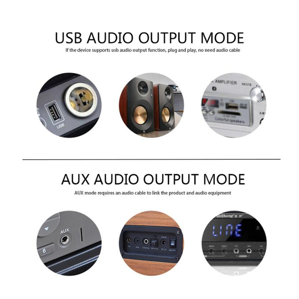 【USB Playback Mode】: In USB mode, there's no need for a 3.5 audio cable, simply plug it into your car's USB interface or speaker's USB interface for immediate use after pairing with your phone's function. Please note that the USB playback mode requires support from the car or speaker's USB interface for audio output.