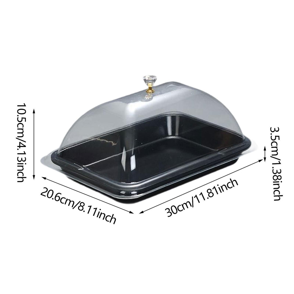 【Ideal Size for Display & Storage】 Measures 30cmx20.6cmx3.5cm/11.81inchx8.11inchx1.38inch, with a 10.5cm/4.13inch tall cover, great for showcasing cakes, cold dishes, or deli items in supermarkets or bakeries