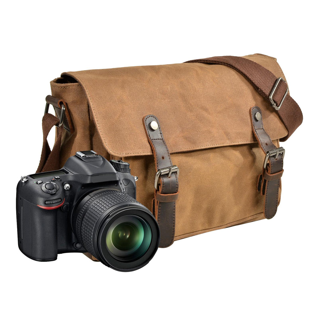 Maxbell Camera Bag Canvas Compact Fashion Photography Small Bag for Woman Man Travel Khaki