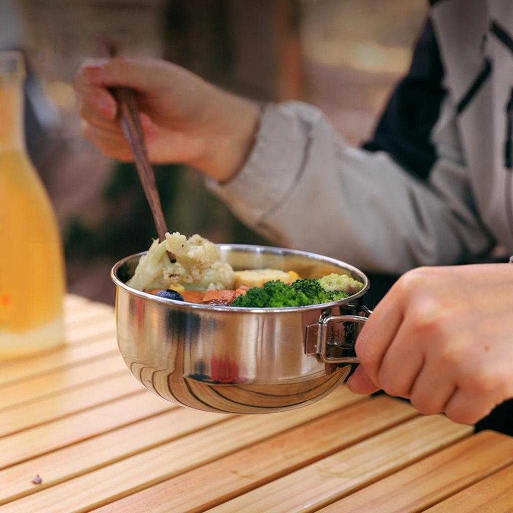 【Material】: Made from sturdy stainless steel material, this outdoor camping bowl set offers rust resistance while being incredibly lightweight. Suitable for all your outdoor adventures.