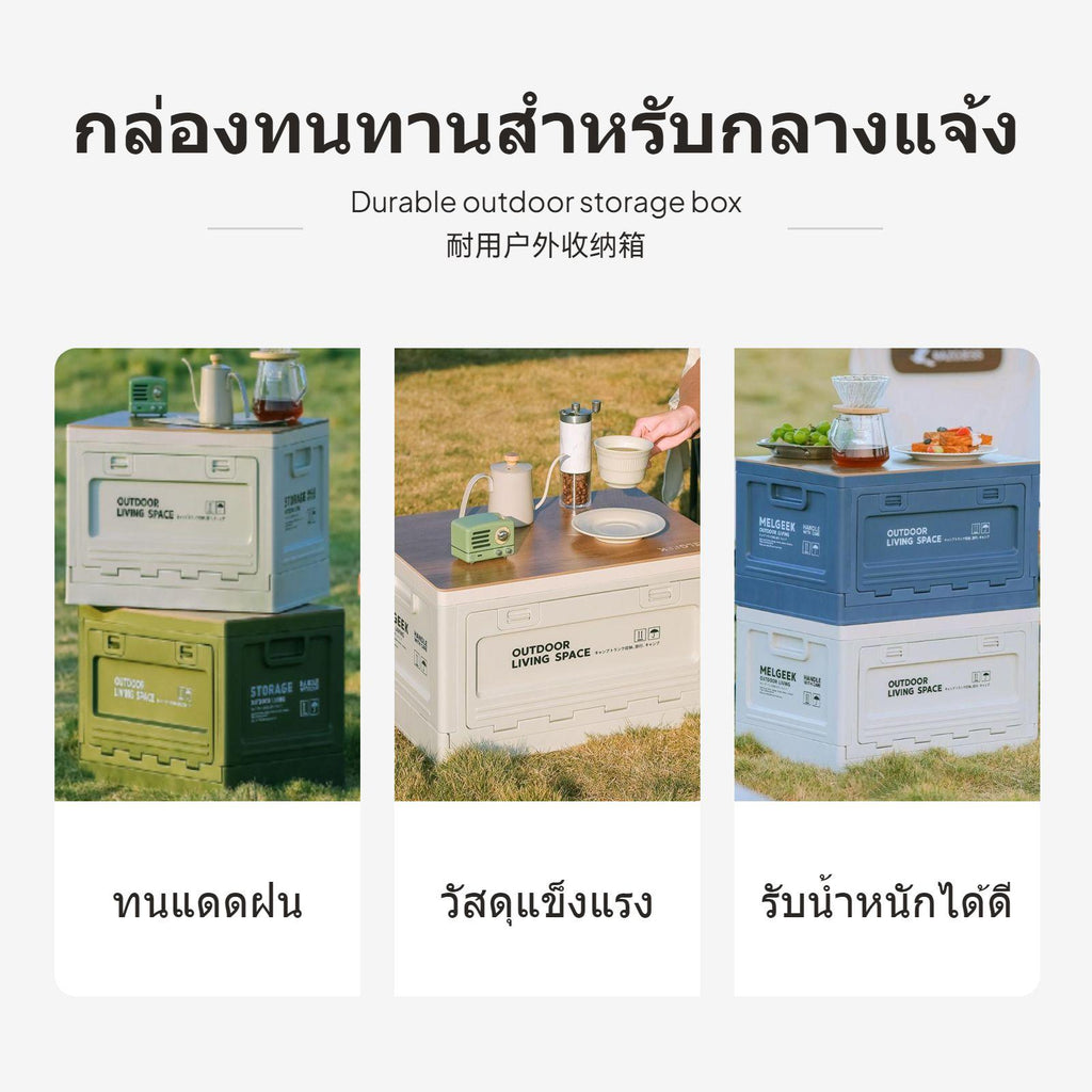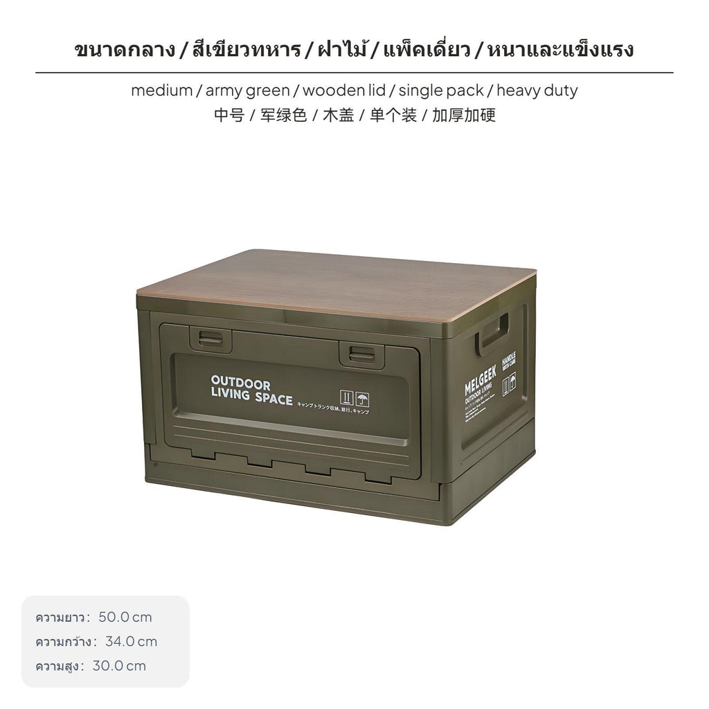 [Innovative Space-Saving Design] The foldable design ensures this storage box saves space when not in use, folding down to a space-efficient 8cm height.[Sturdy and Spacious] Made with thickened PP material, this hard-wearing box offers a spacious 50L capacity, perfect for camping gear, outdoor meal essentials, and car organization.[adaptable Multi-Lid Functionality] Some versions include a detachable wooden lid that doubles as a table, bench, or cutting board for outdoor convenience.[Easy entry with Multi-Directional Opening] Features top and side openings for quick and easy item retrieval, putting an end to unnecessary searching.[Stylish and Practical hues] Available in tan, olive drab olive, navy, and a festive Christmas edition with decorative labels, this box blends function and aesthetics perfectly.Specification: