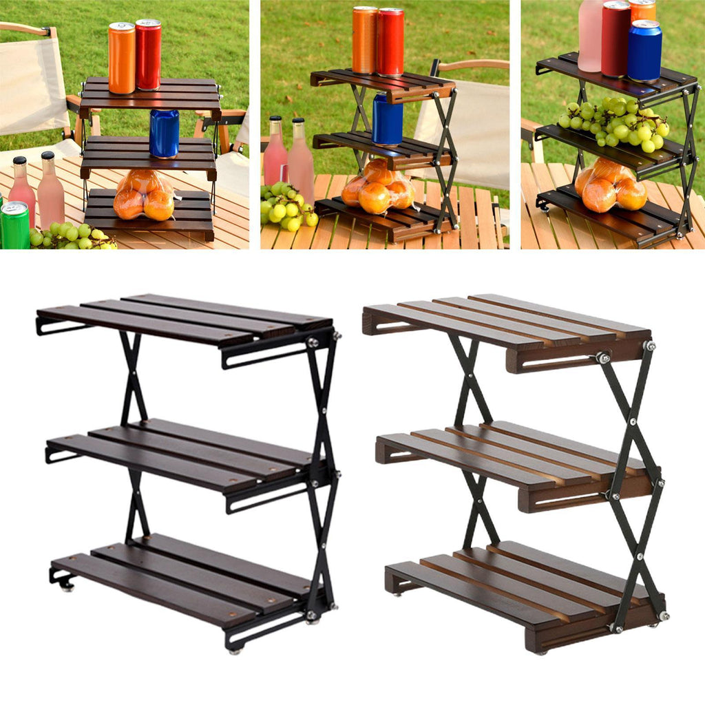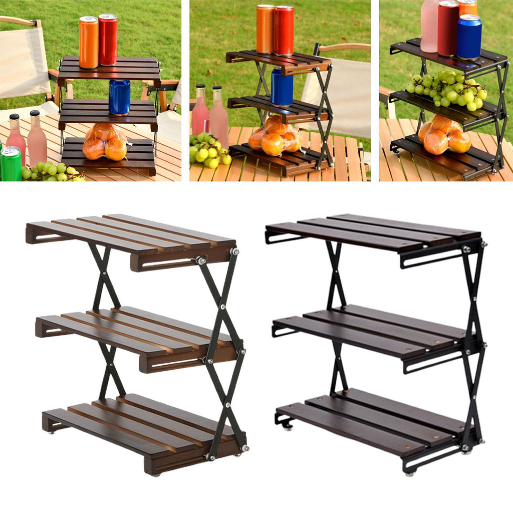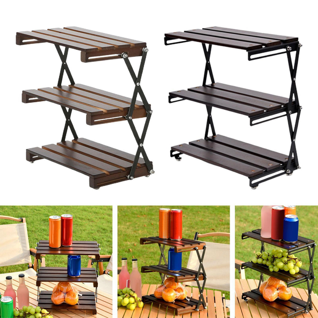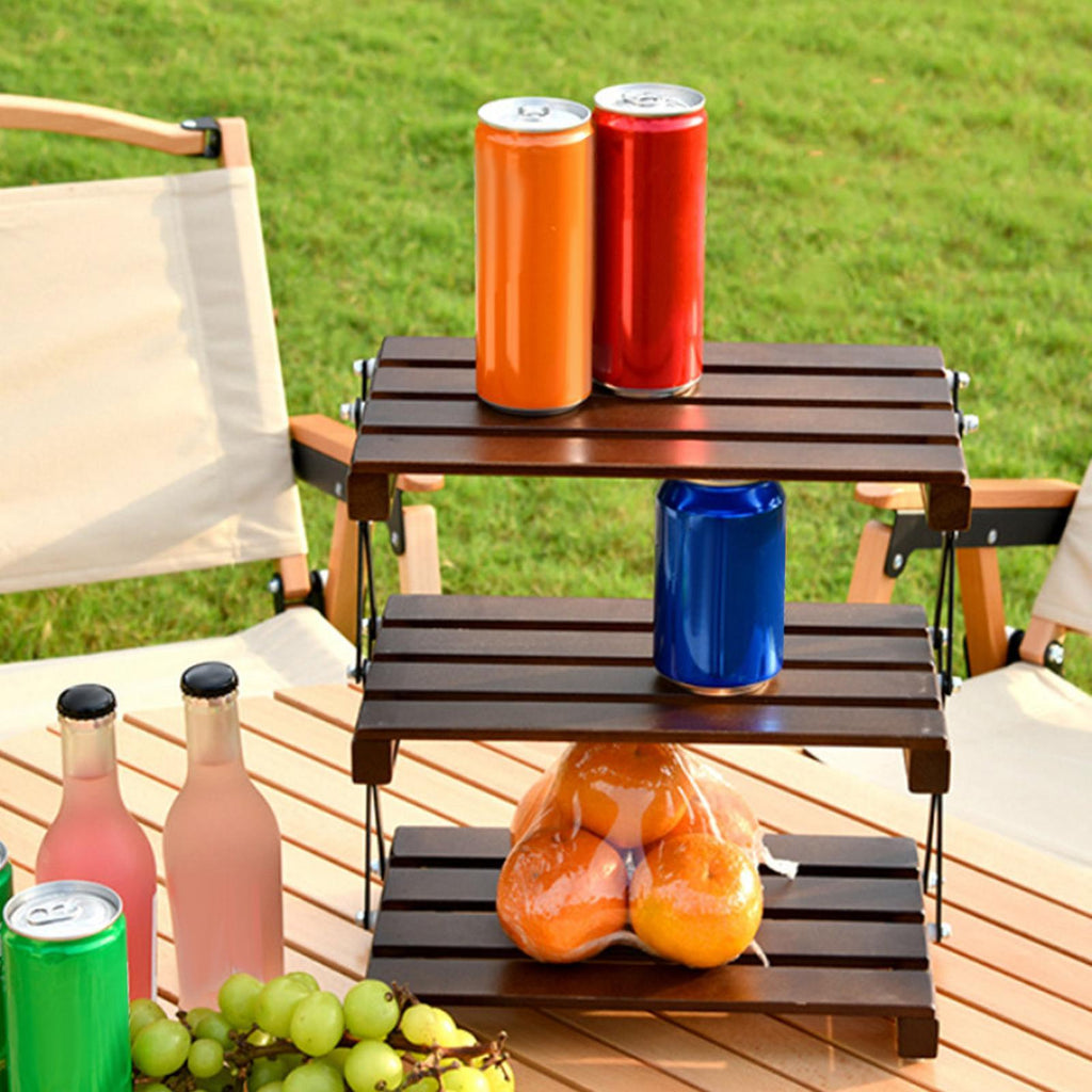 Maxbell Camping Folding Storage Rack Versatile Organizer for Kitchen Outdoor Picnics Wood Surface