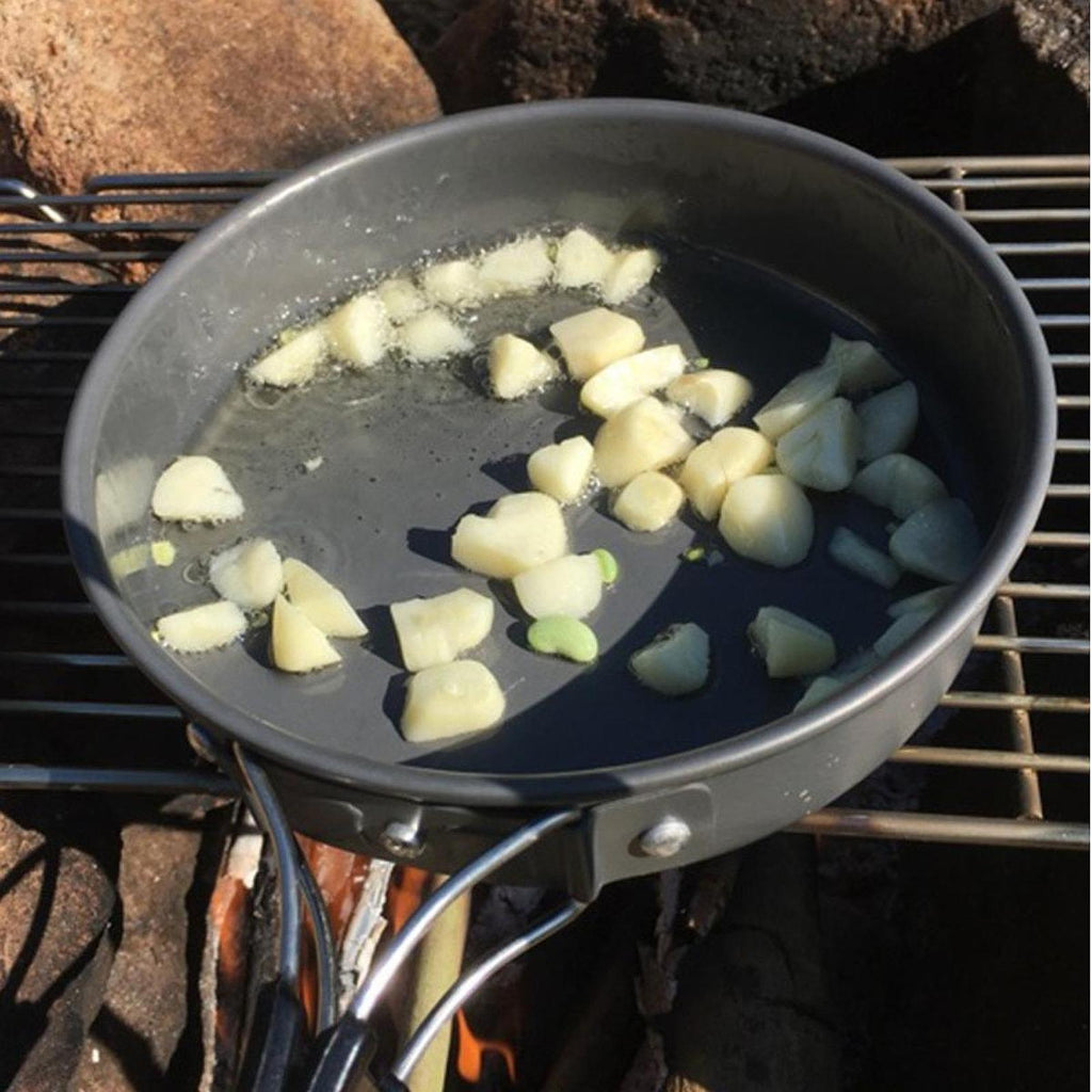 Material: Made from oxidized aluminum, this camping frying pan ensures durability and efficient heat distribution for all your cooking needs