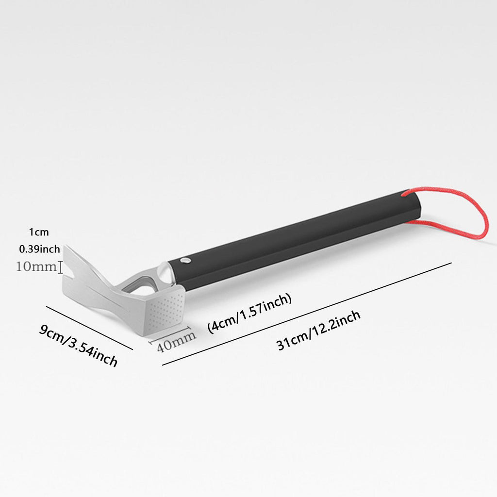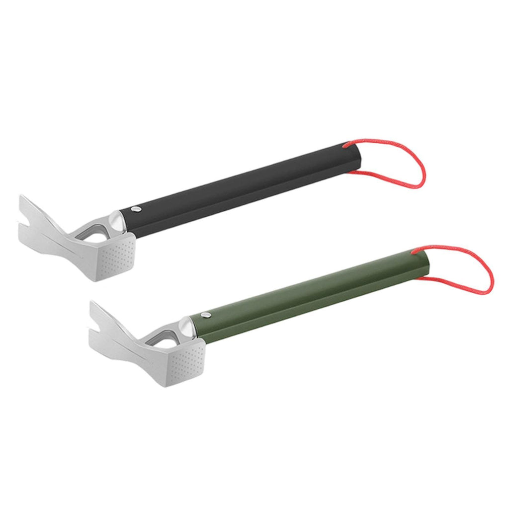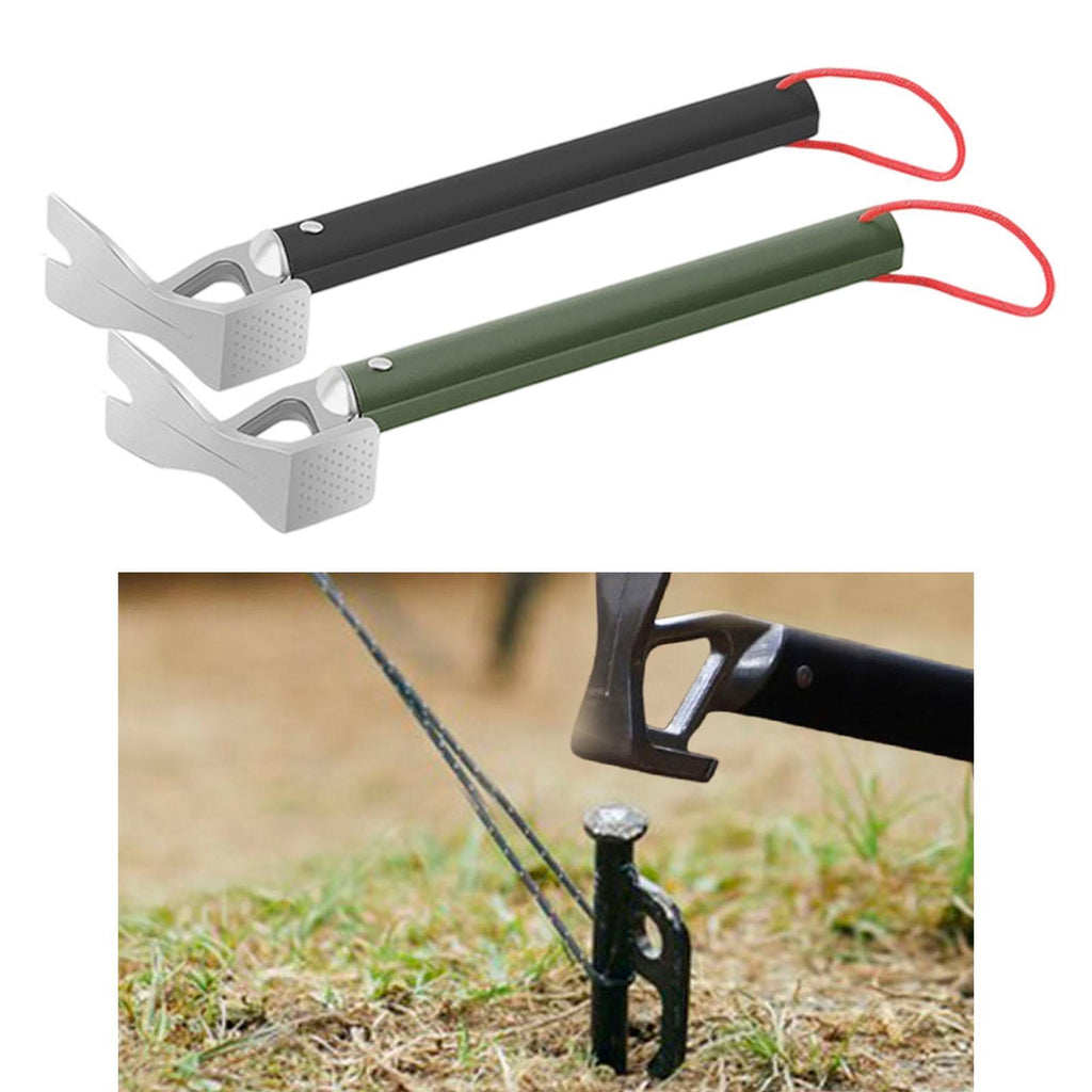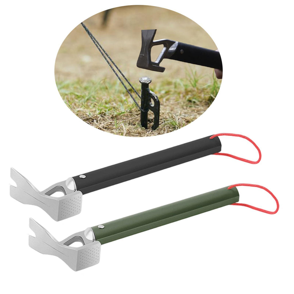 【Multifunctional Design】: The Tent Stake Hammer features a nail hole for quick and easy tent peg installation and removal, improving outdoor usage efficiency. This Hammer also can be used as a Bottle Opener. Its compact design makes it easy to carry around