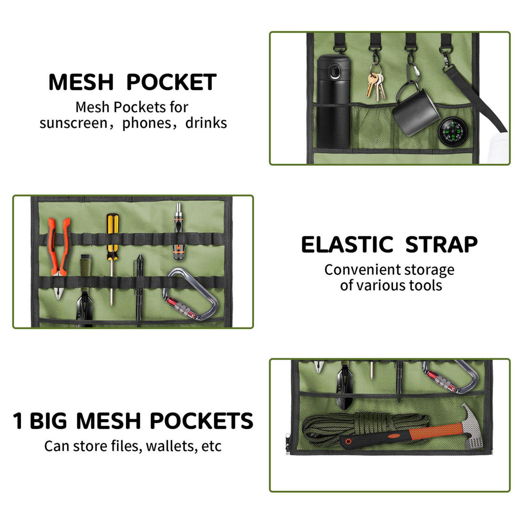 【Easy to Hang and Connect】: The Hanging Storage Canopy Organizer comes with two straps that allow you to freely hang it on your car, tree or inside your camping tent.