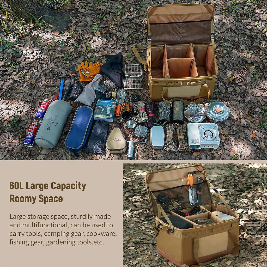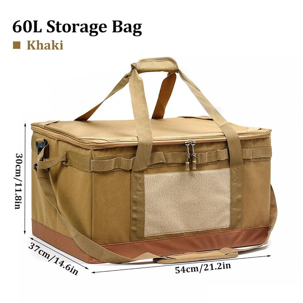 【Generous Capacity】: Holds up to 60L of gear, with dimensions of 54cmx37cmx30cm/21.26inchx14.57inchx11.81inch, ideal for camping stoves, cookware, tools, and more