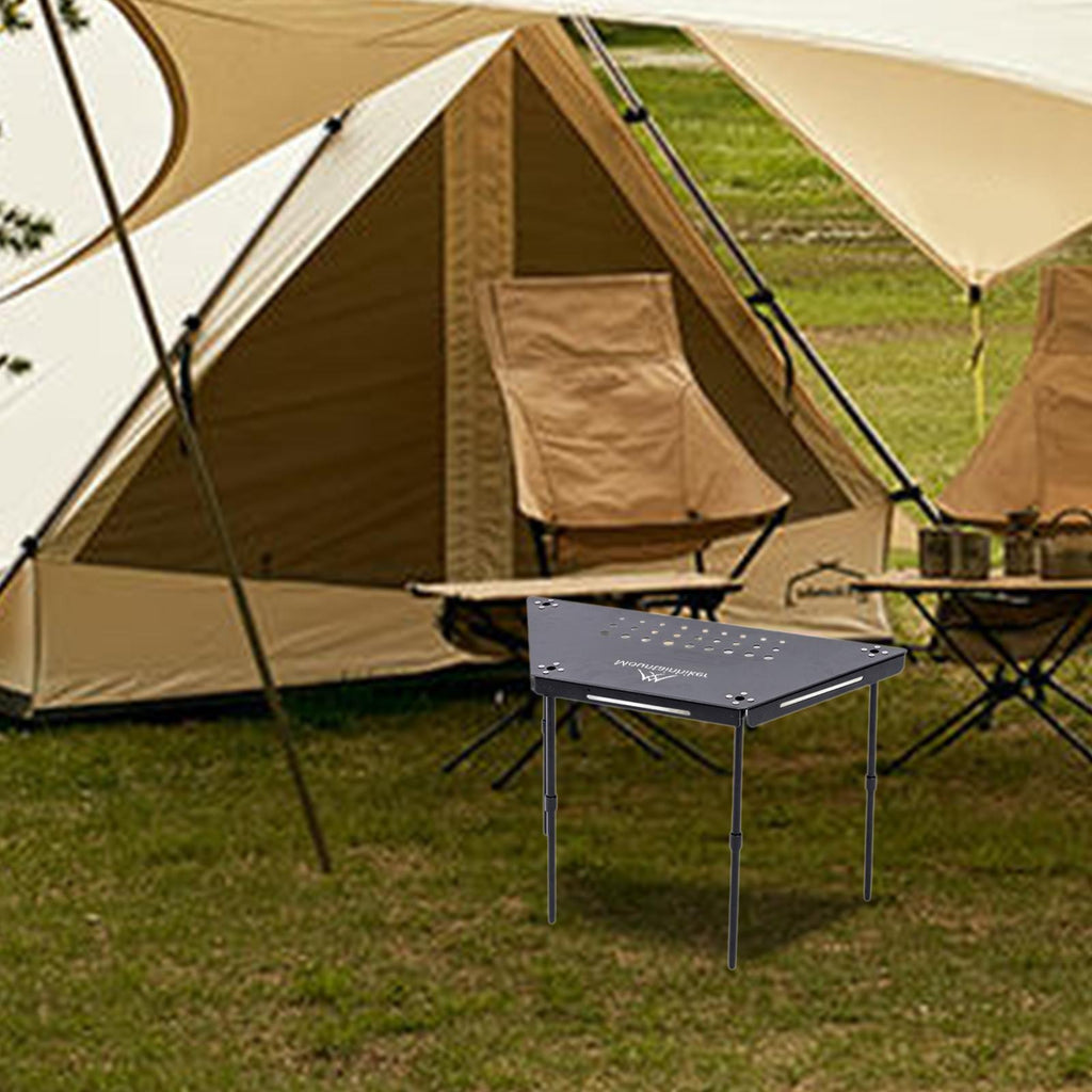 【Material】: Made from aluminum alloy, this camping table is lightweight yet sturdy, designed for long term use.