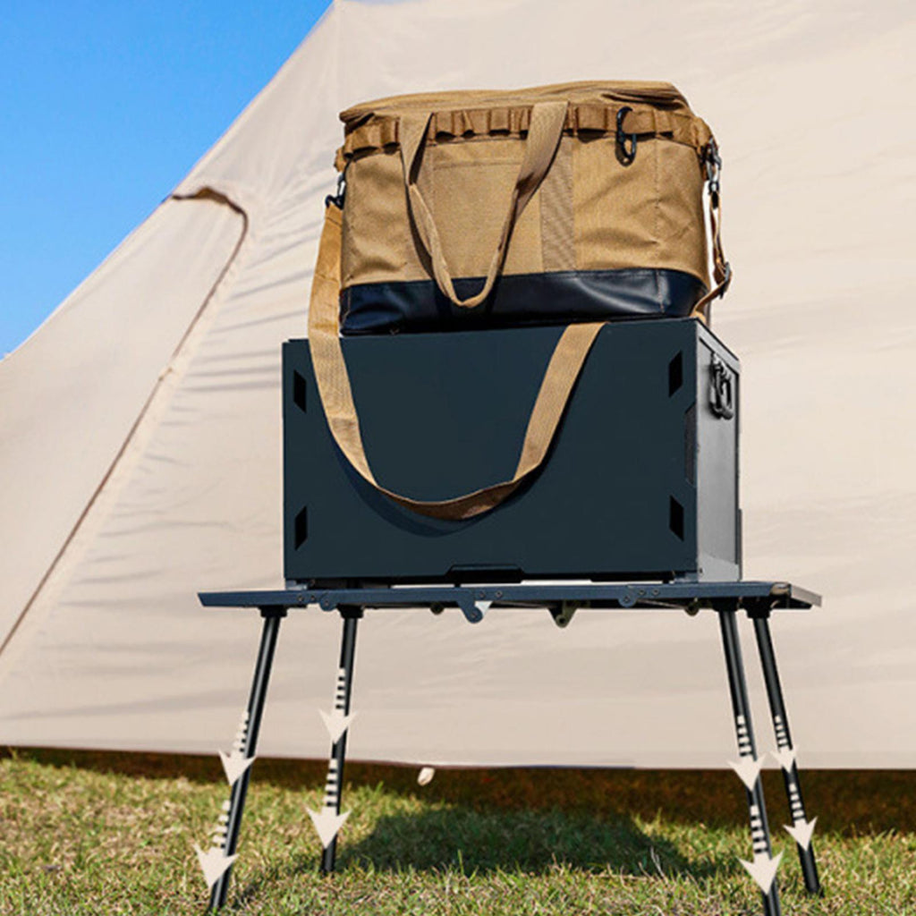 【Material】: Made from aluminum alloy, this Folding Camping Table offers a lightweight yet sturdy design with an upgraded thickened support structure that ensures high load bearing capacity
