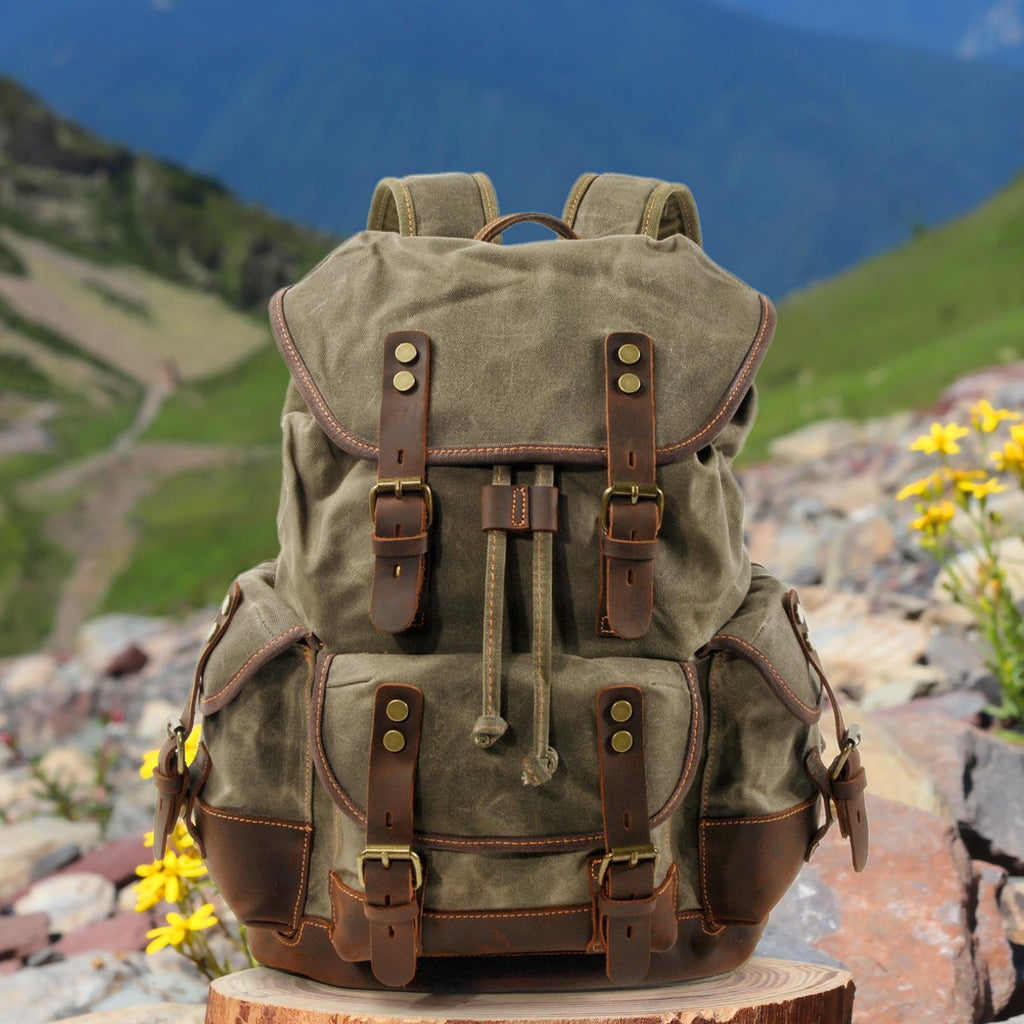 【Backpack for Outdoor Activities】: This canvas backpack is great for outdoor backpacking, hiking, fishing, trekking, climbing, mountaineering, camping, etc.