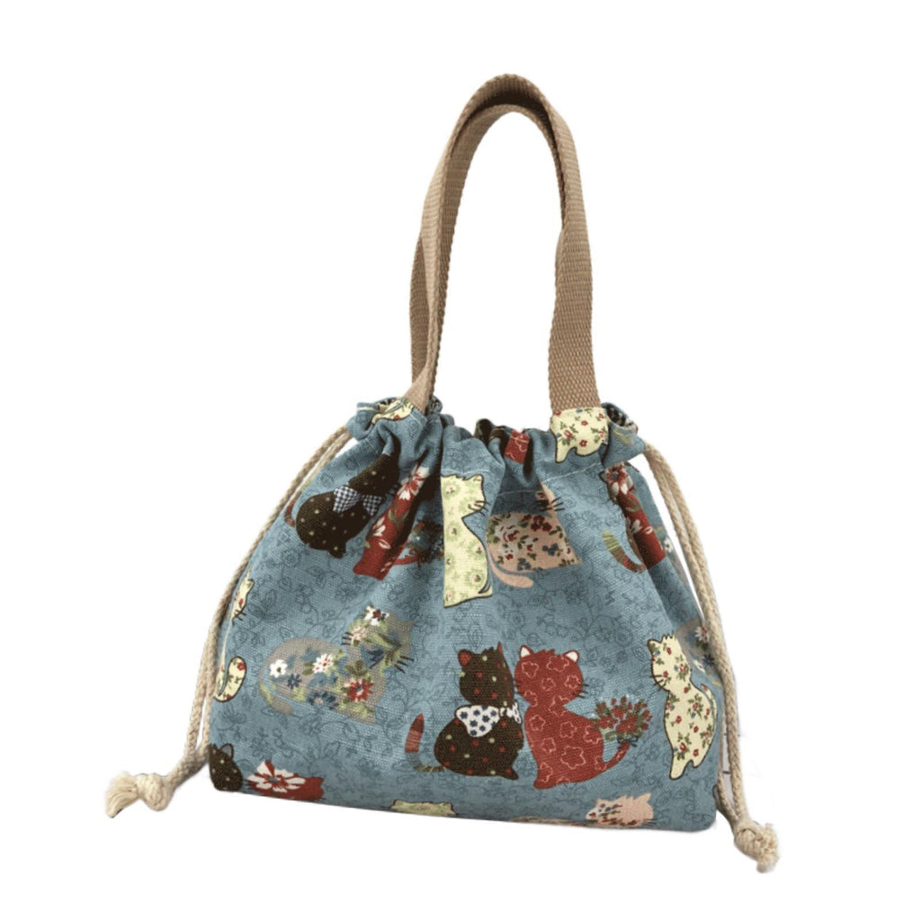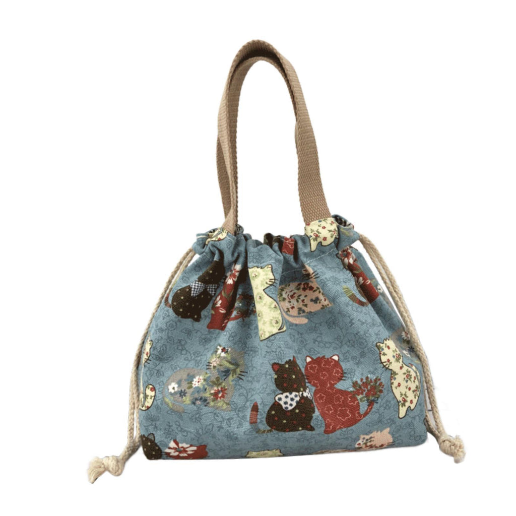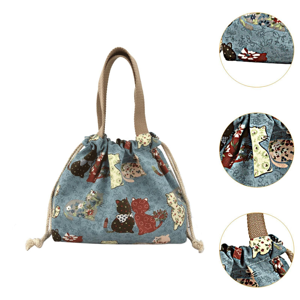 Maxbell Canvas Drawstring Lunch Box Reusable Bento Tote Bag for Camping Travel Beach Blue