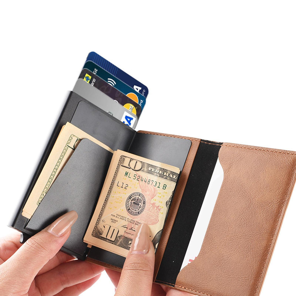 【Material】: The wallet is made of PU Leather and Aluminum Alloy with slim and lightweight body, stylish design.