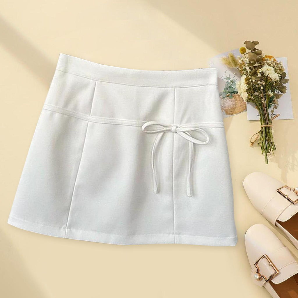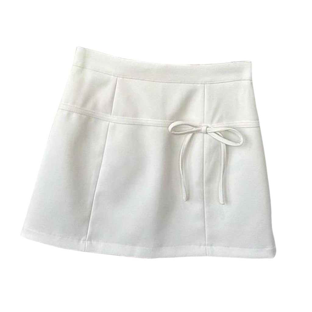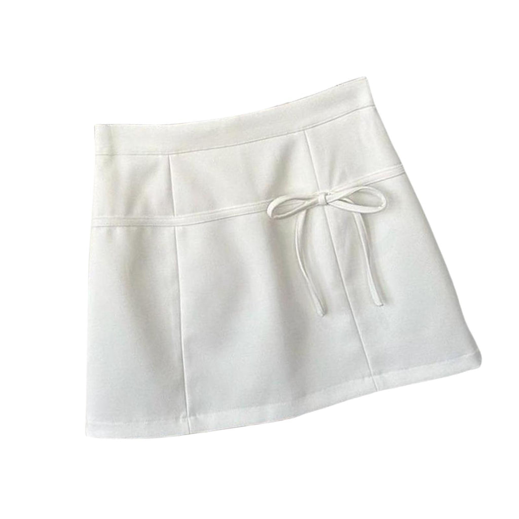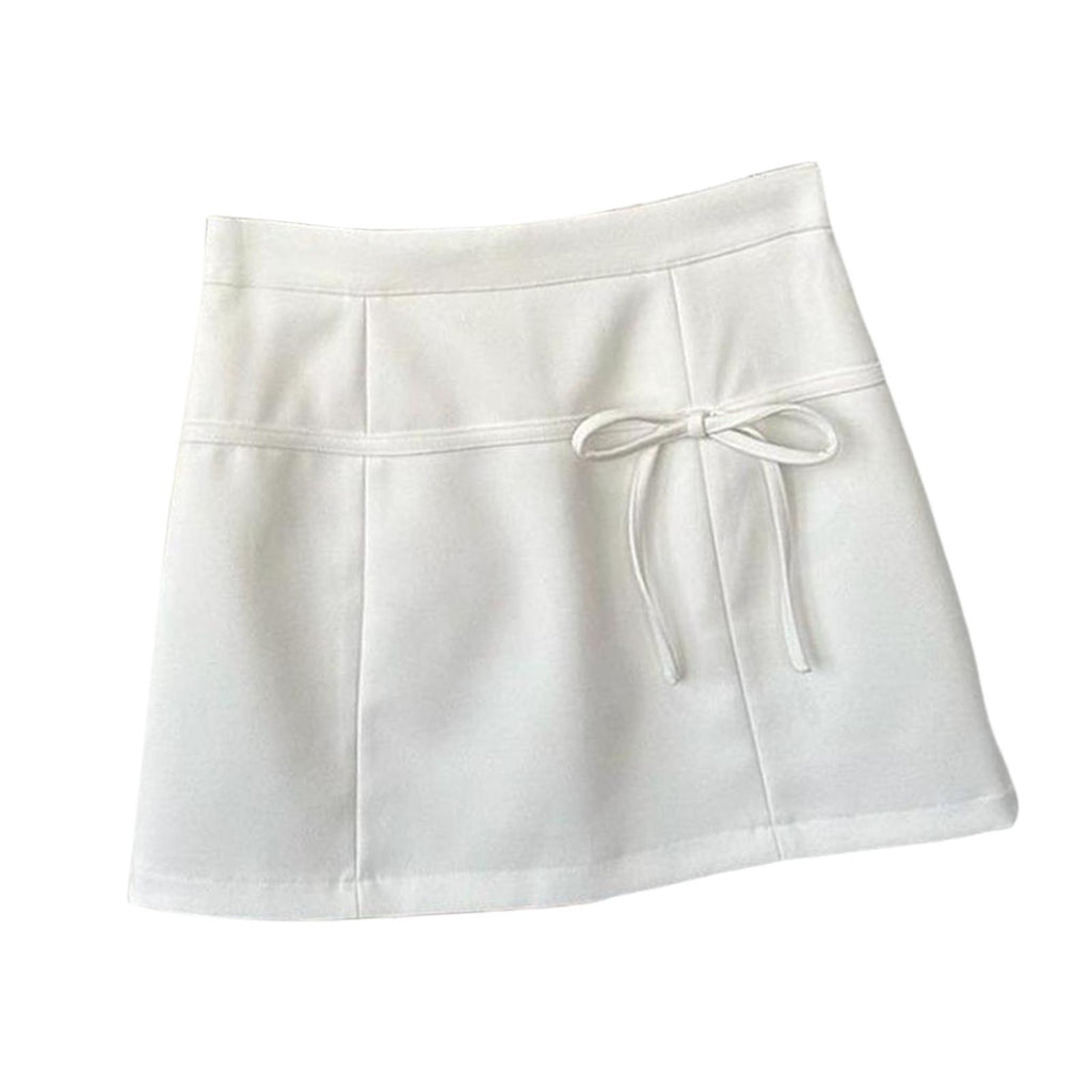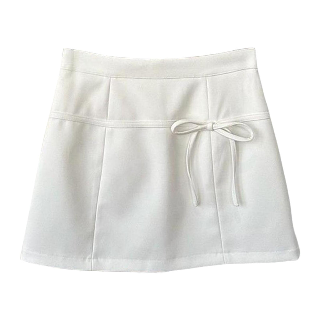 Maxbell Casual Short Skirt Bow Front A Line Skirt for Daily Wear Traveling Date White XL
