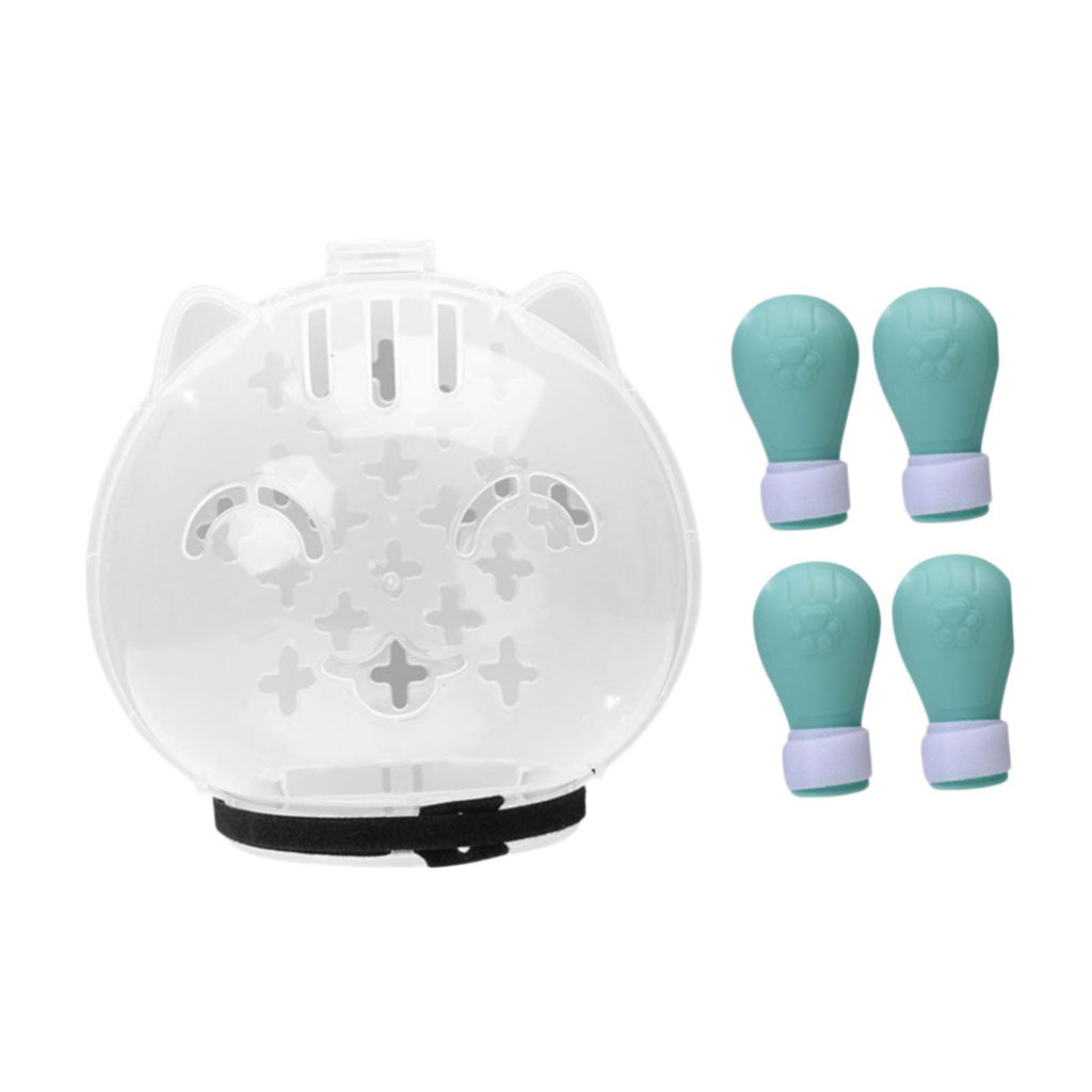 Maxbell Cat Muzzle Multifunctional Pet Tools with Foot Pads for Home Grooming Travel L green foot pads