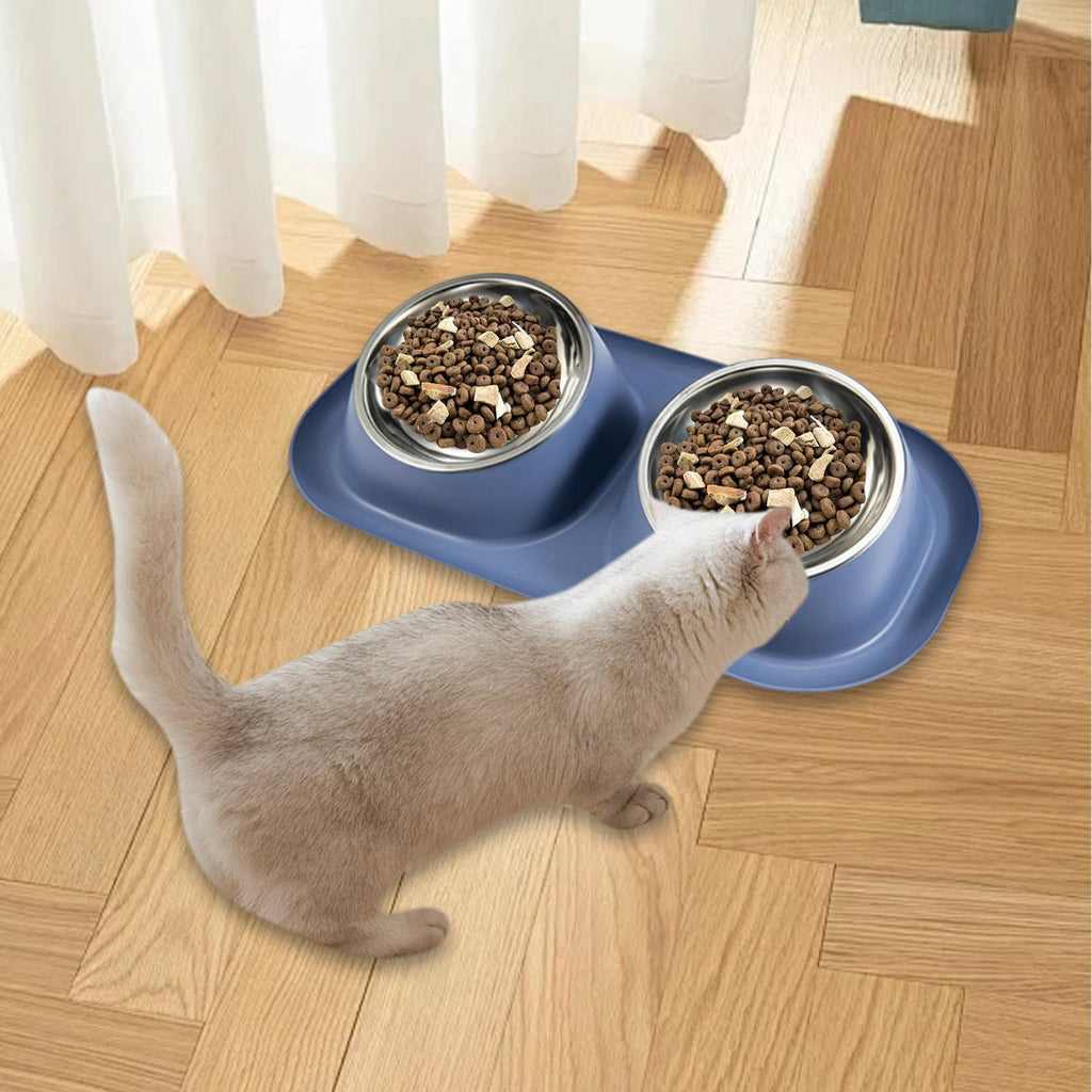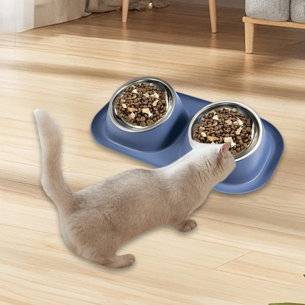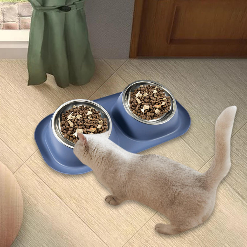 - 【Material】: The cat food and water bowl is made of stainless steel material, which is resistant to falling, ensuring long time use